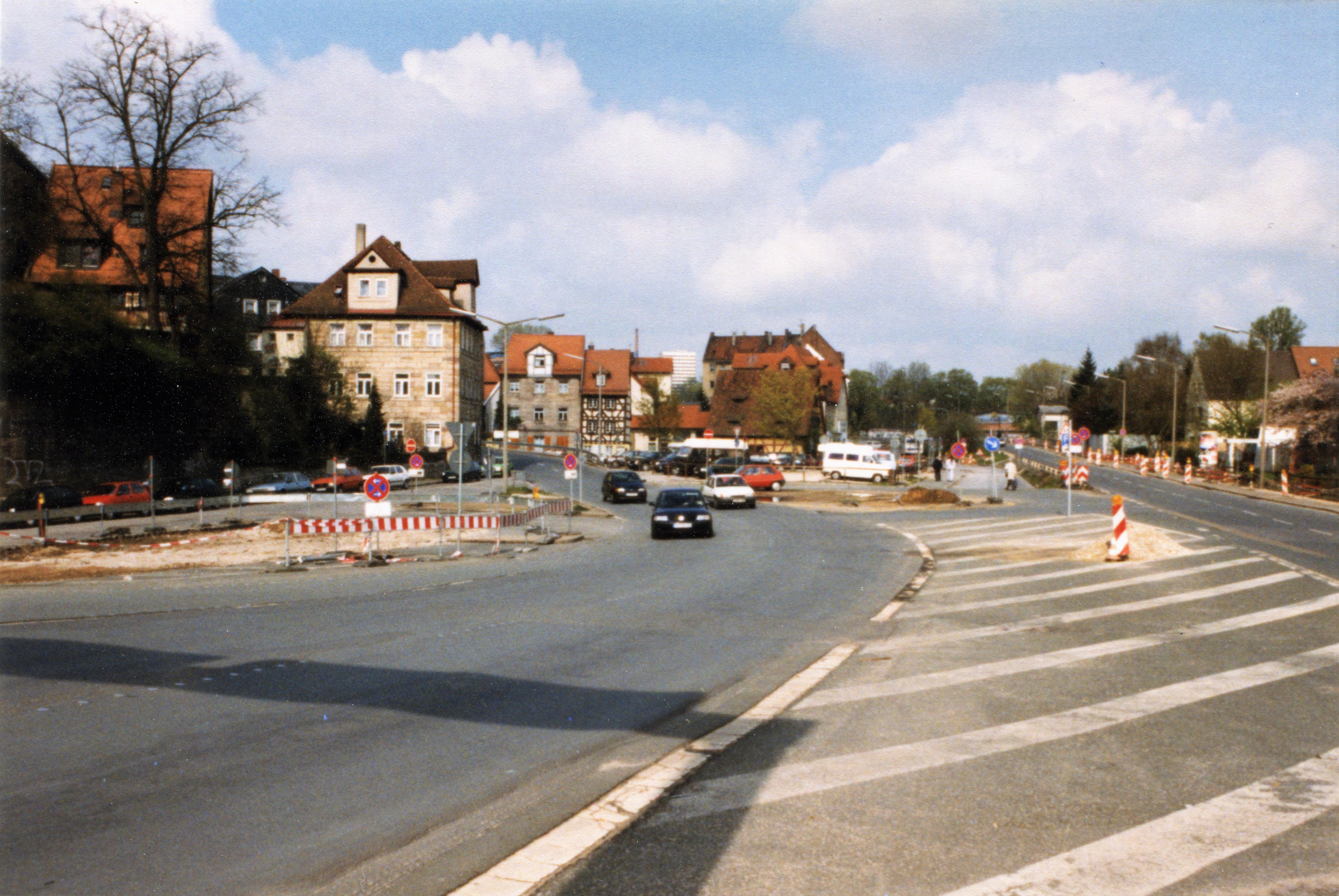 | Beschreibung | Baubeginn der Lärmschutzreihenhäuser Heiligenstraße 33-59 als 1. BA an dieser Stelle und späterer 2. BA über die Einmündung Heiligenstraße hinweg zur Pegnitzstraße der "Kleeblatt Wohnbau". Die Kapellenstraße noch 2-spurig, später 4-spurig ausgebaute Nordspange im April 1998 | ||