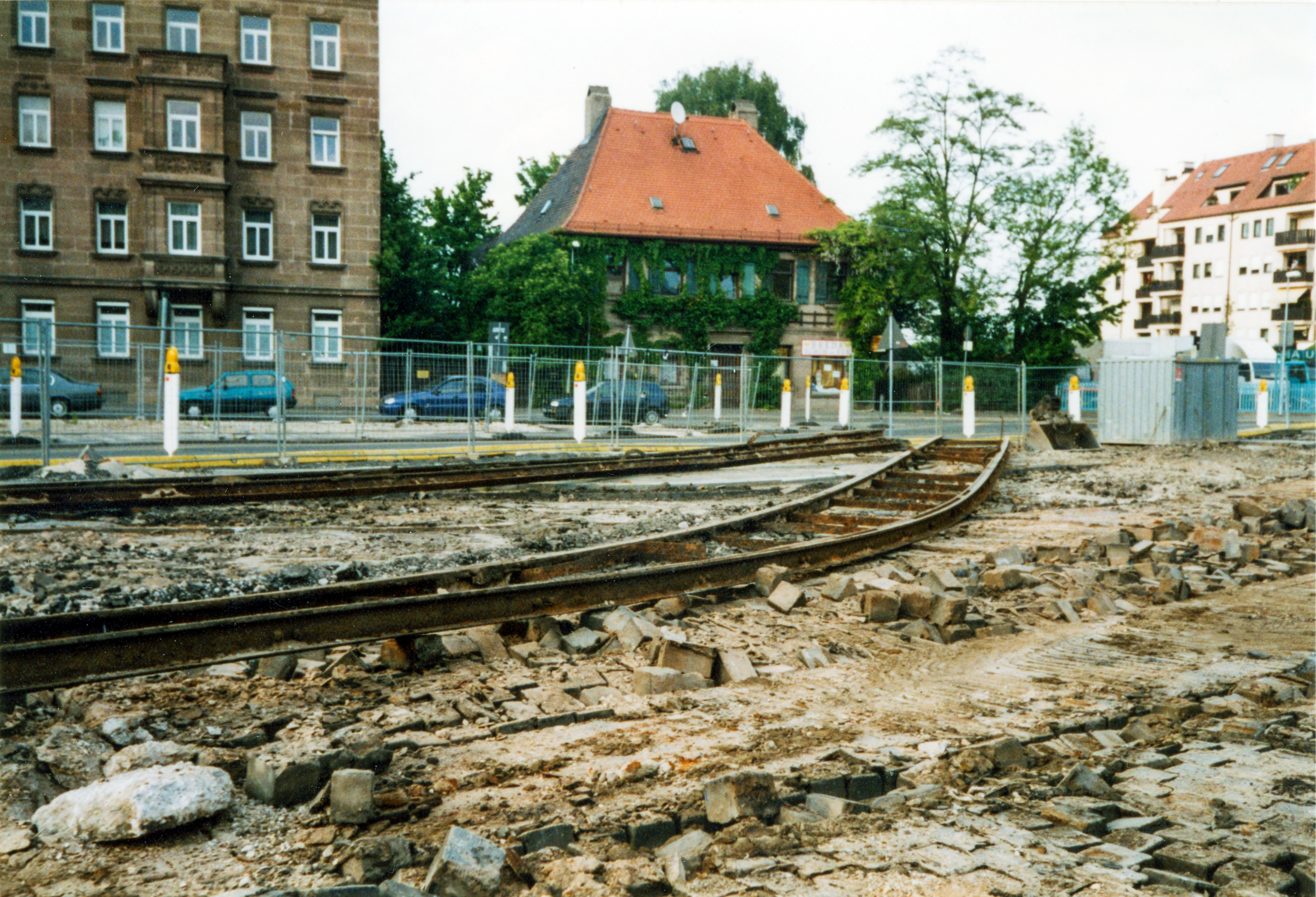 | Beschreibung | Freigelegte Schienenanlage der Straßenbahn während der Umgestaltung der Billinganlage, Juli 2003 | ||
