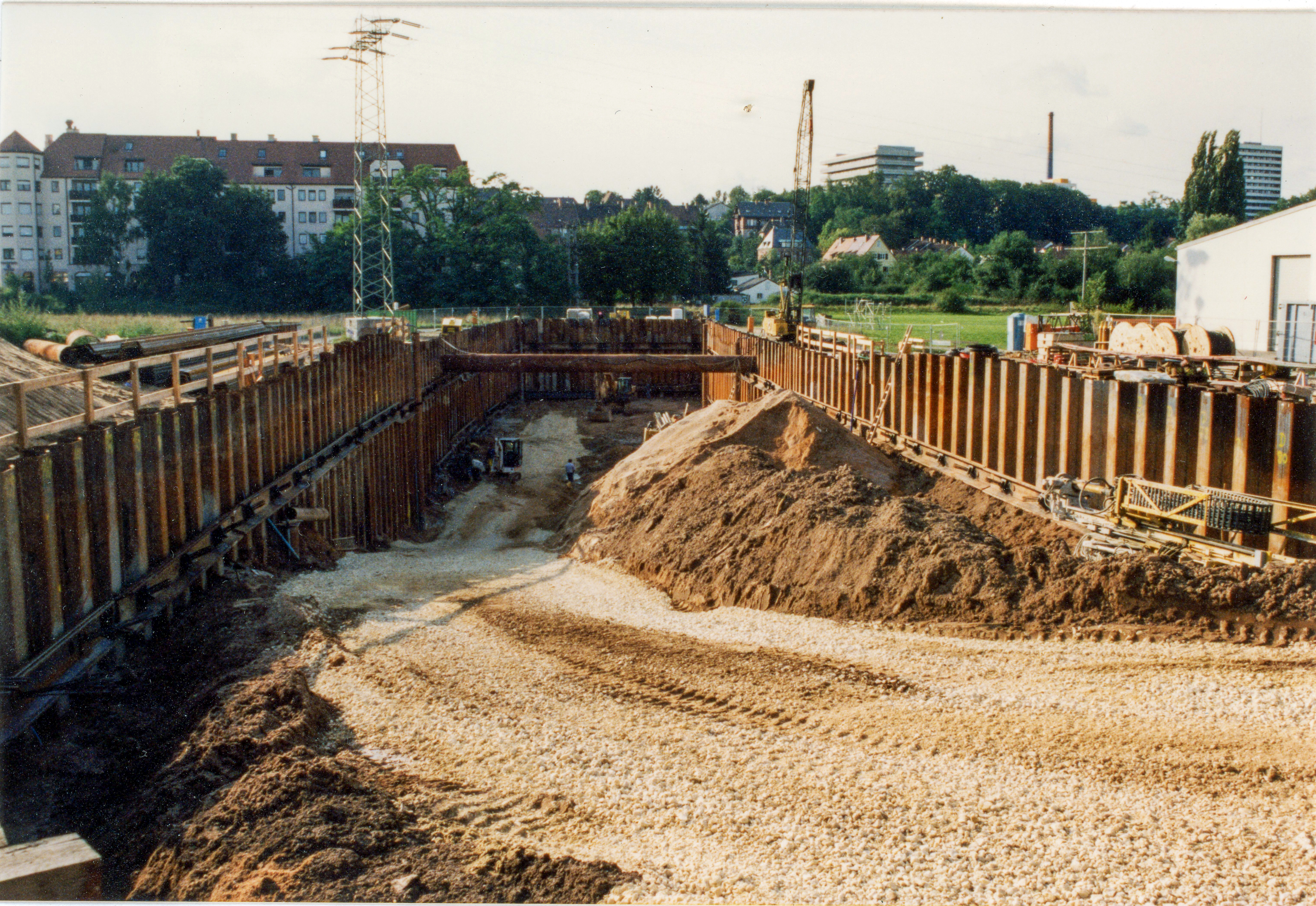 | Beschreibung | Bauarbeiten zum U-Bahnhof Stadthalle, Sept. 1995 | ||