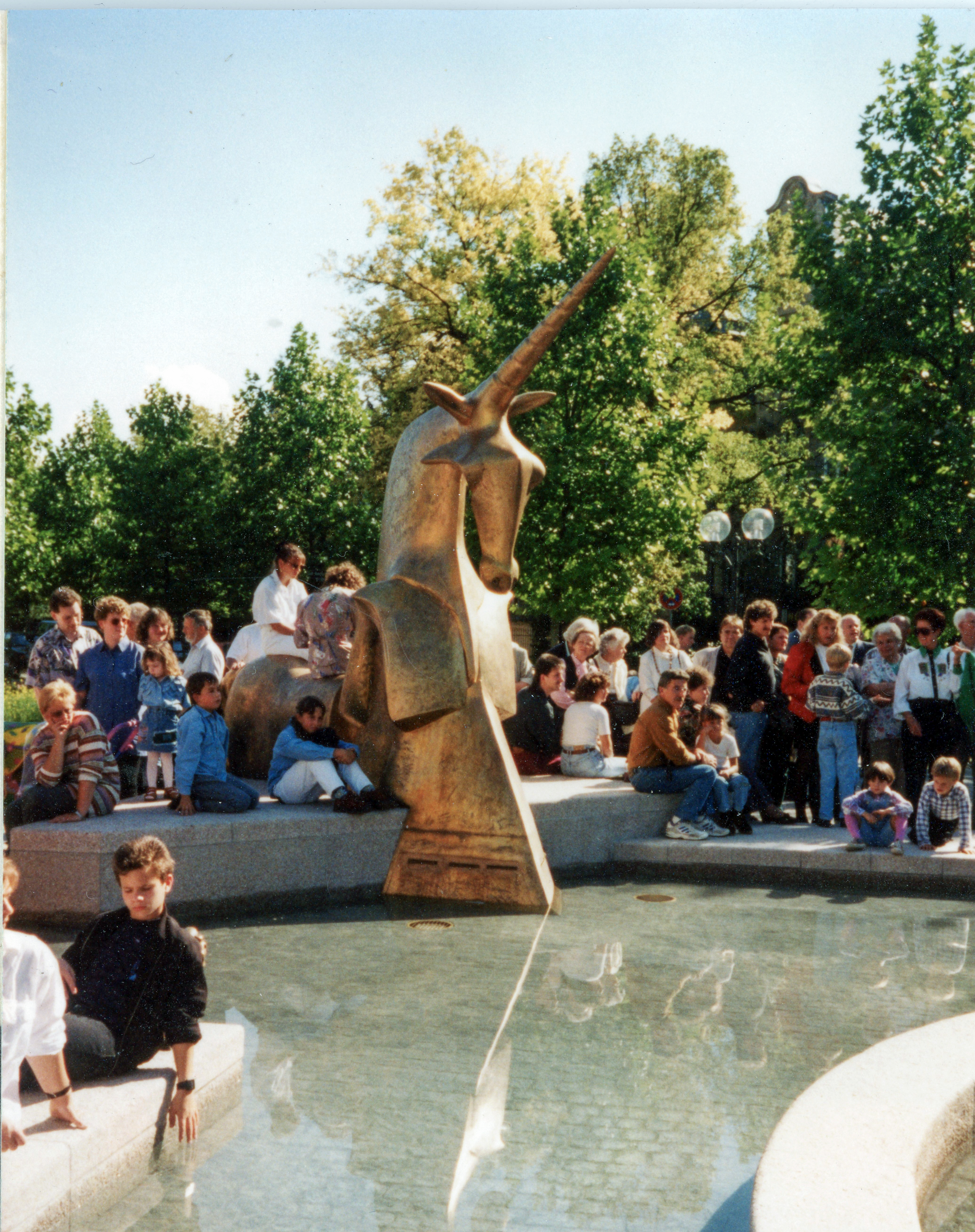 | Beschreibung | Einhorn; Eröffnung des Paradiesbrunnens an der Freiheit, Sept. 1995 | ||