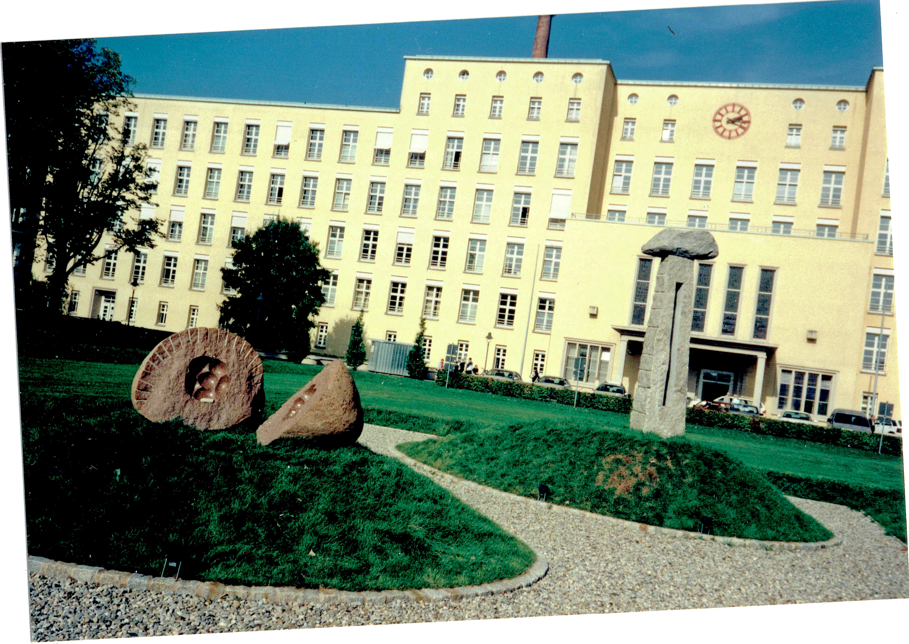 | Beschreibung | Die Skulptureninsel der Augsburgerin Michaela Biet vor dem Klinikum, Oktober 2000 | ||