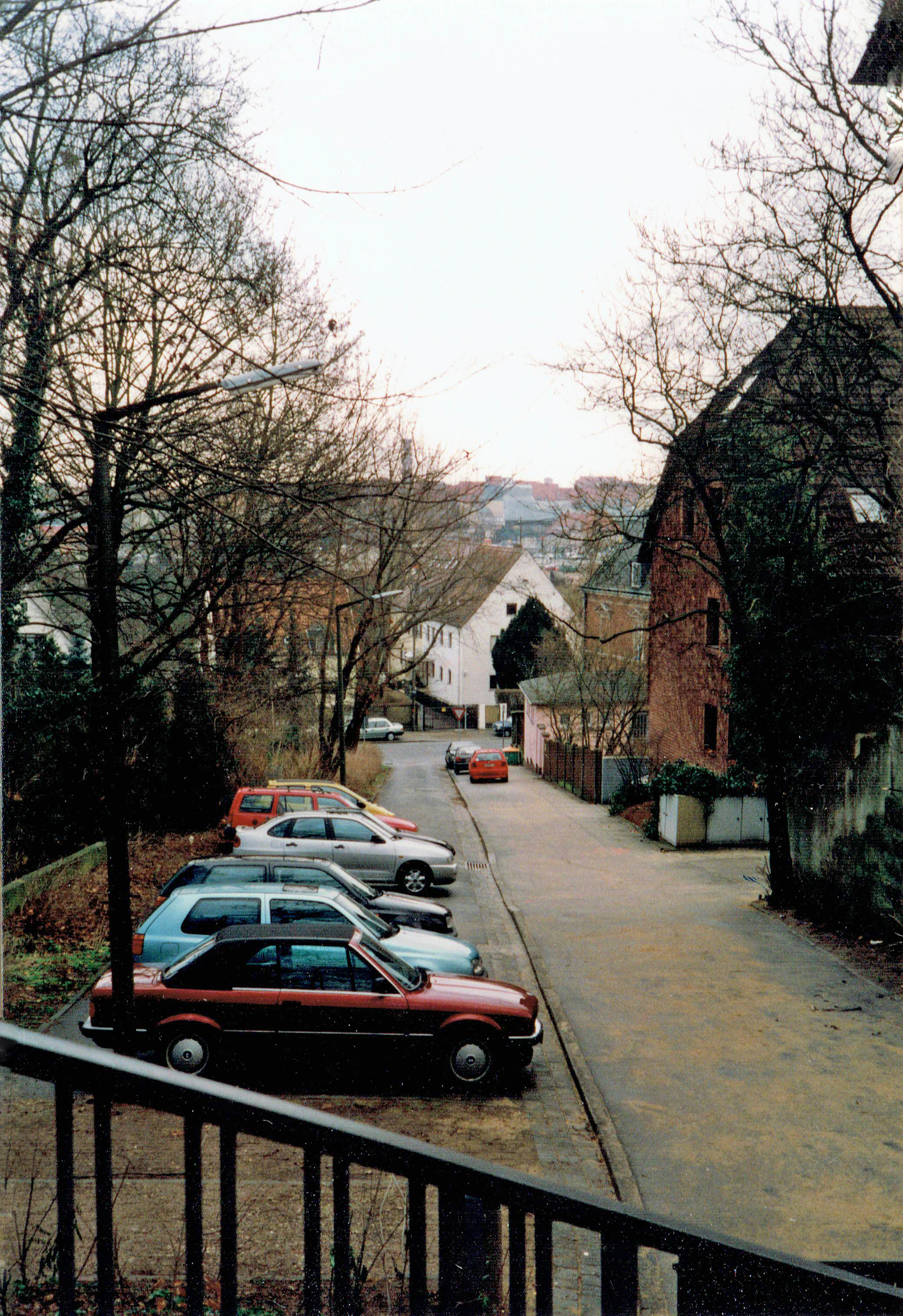 Blick von der Treppe in die Jakob-Henle-Straße Richtung Vacher Straße Urheber: Klaus-Peter Schaack<br>Erstellungsdatum: 25. Januar 2001<br>Lizenz: cc-by-sa-3.0