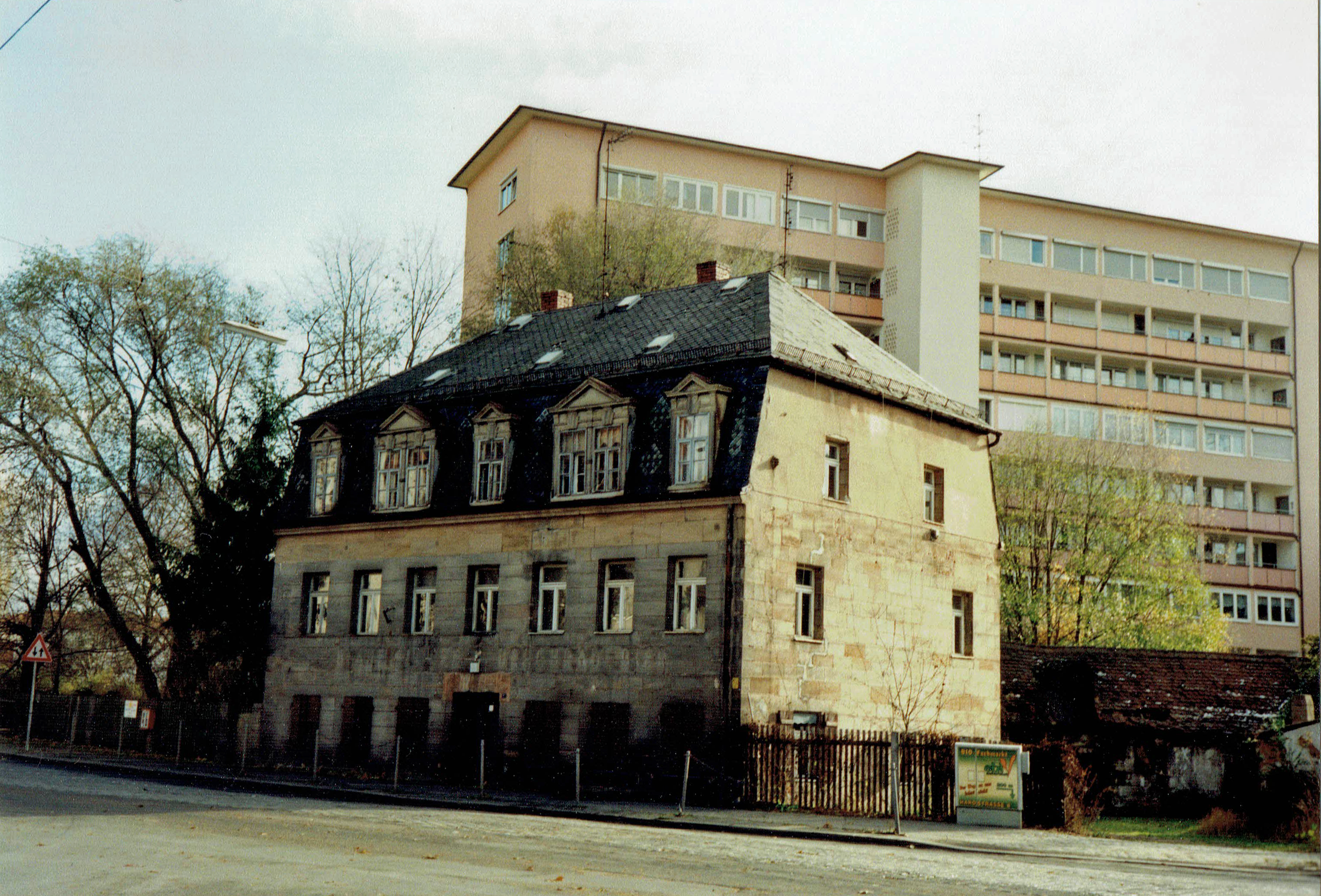 | Beschreibung | Die ehemalige Gastwirtschaft Zur Blauen Glocke, dahinter das Haus Cadolzburger Straße 1, November 2001 | ||