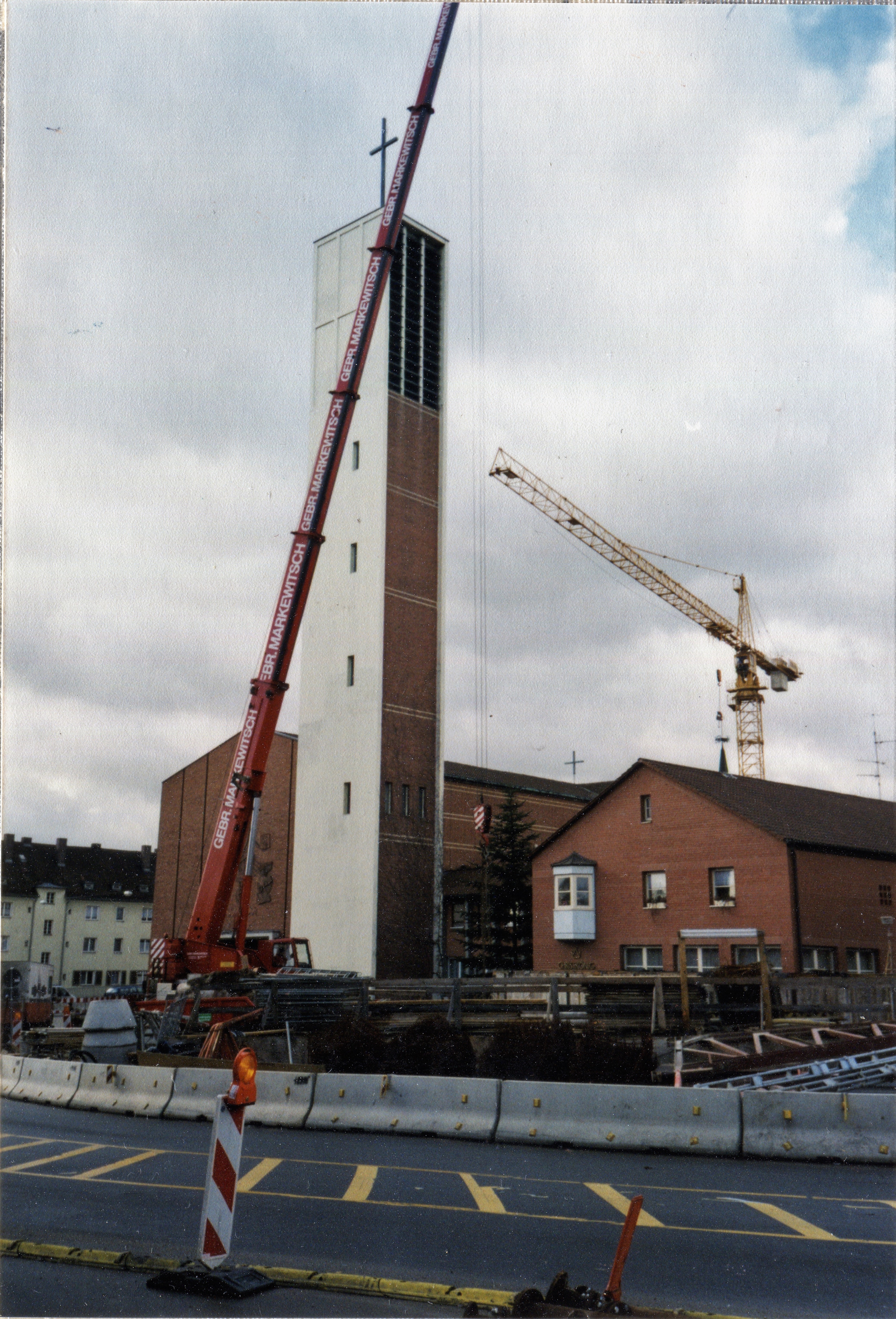 | Beschreibung | Bauarbeiten U-Bahnhof Klinikum vor der Christkönig-Kirche im Januar 2003 | ||
