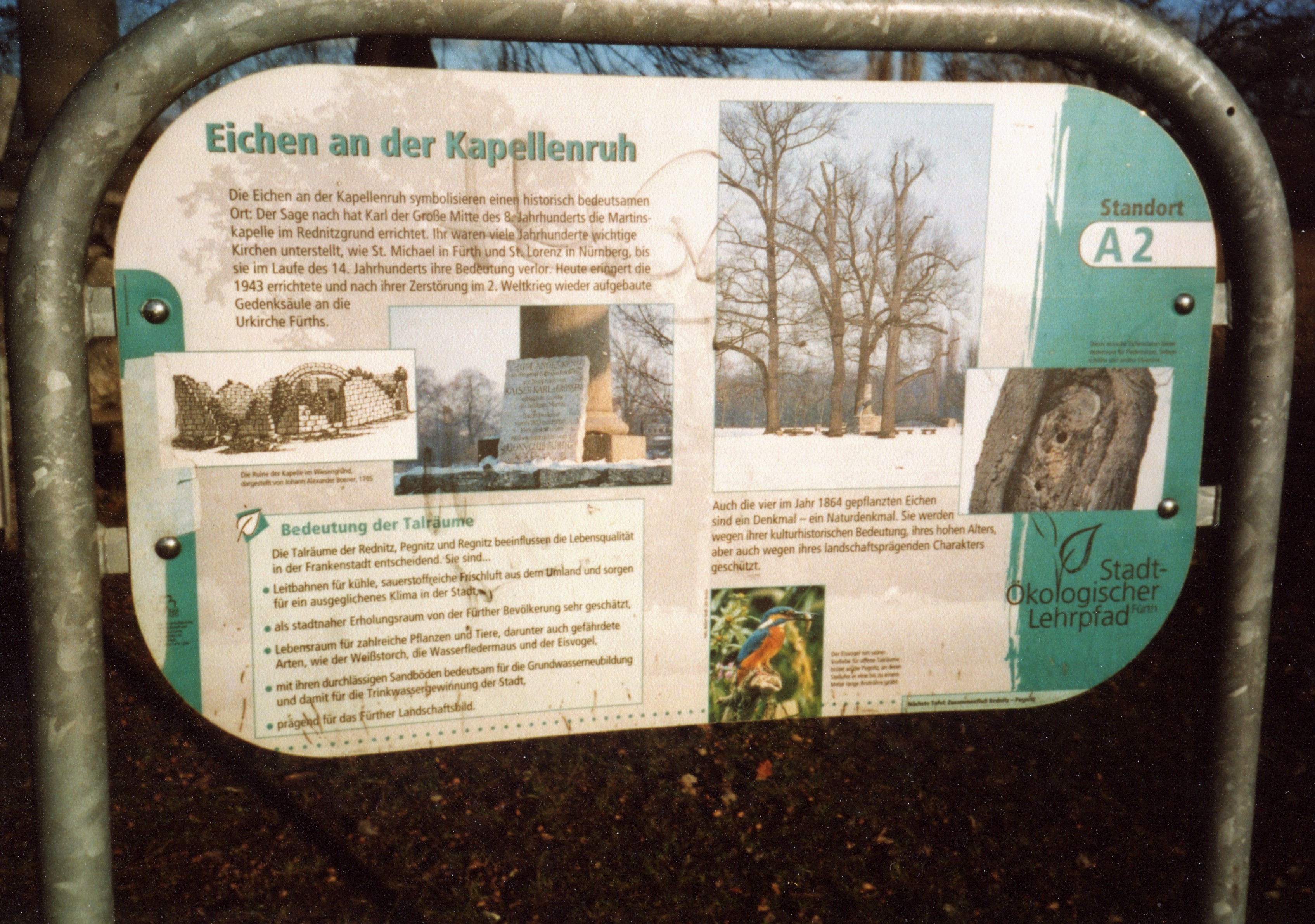 | Beschreibung | Eine Schautafel des stadtökologischen Lehrpfads Fürth zum Thema "Eichen an der Kapellenruh", November 2003 | ||