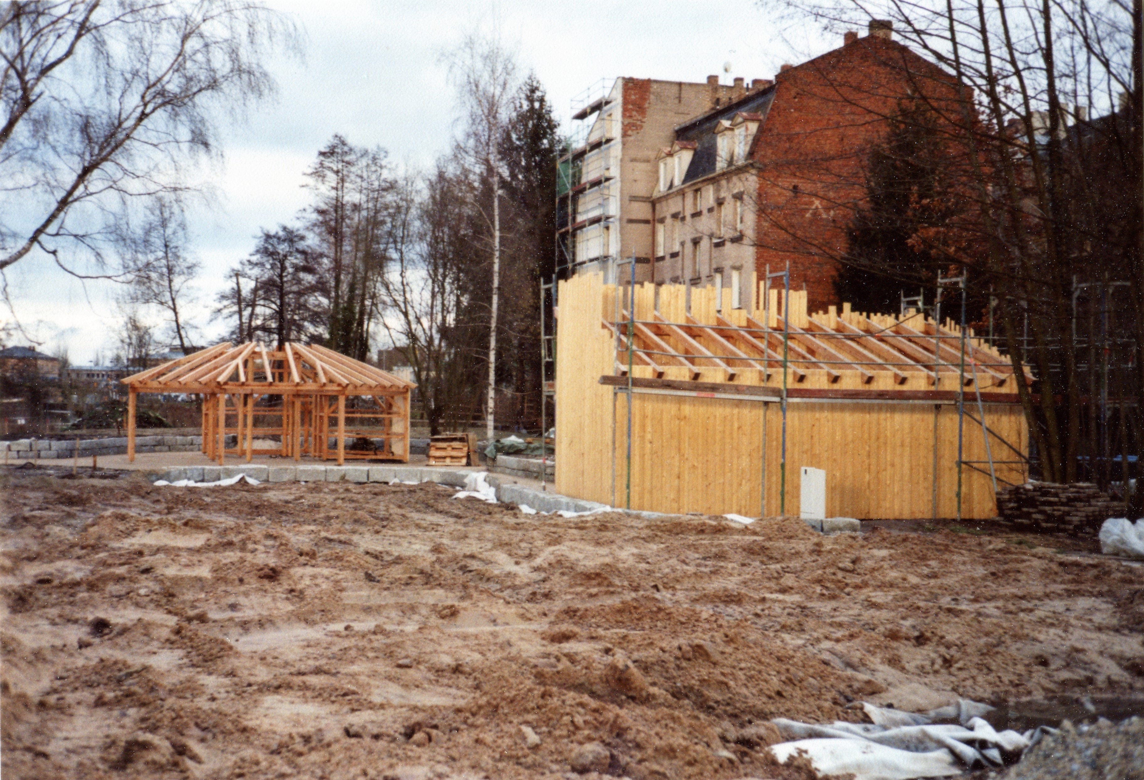BeschreibungBau von Pavillon und Gerätehaus der Interkulturellen Gärten, Februar 2007