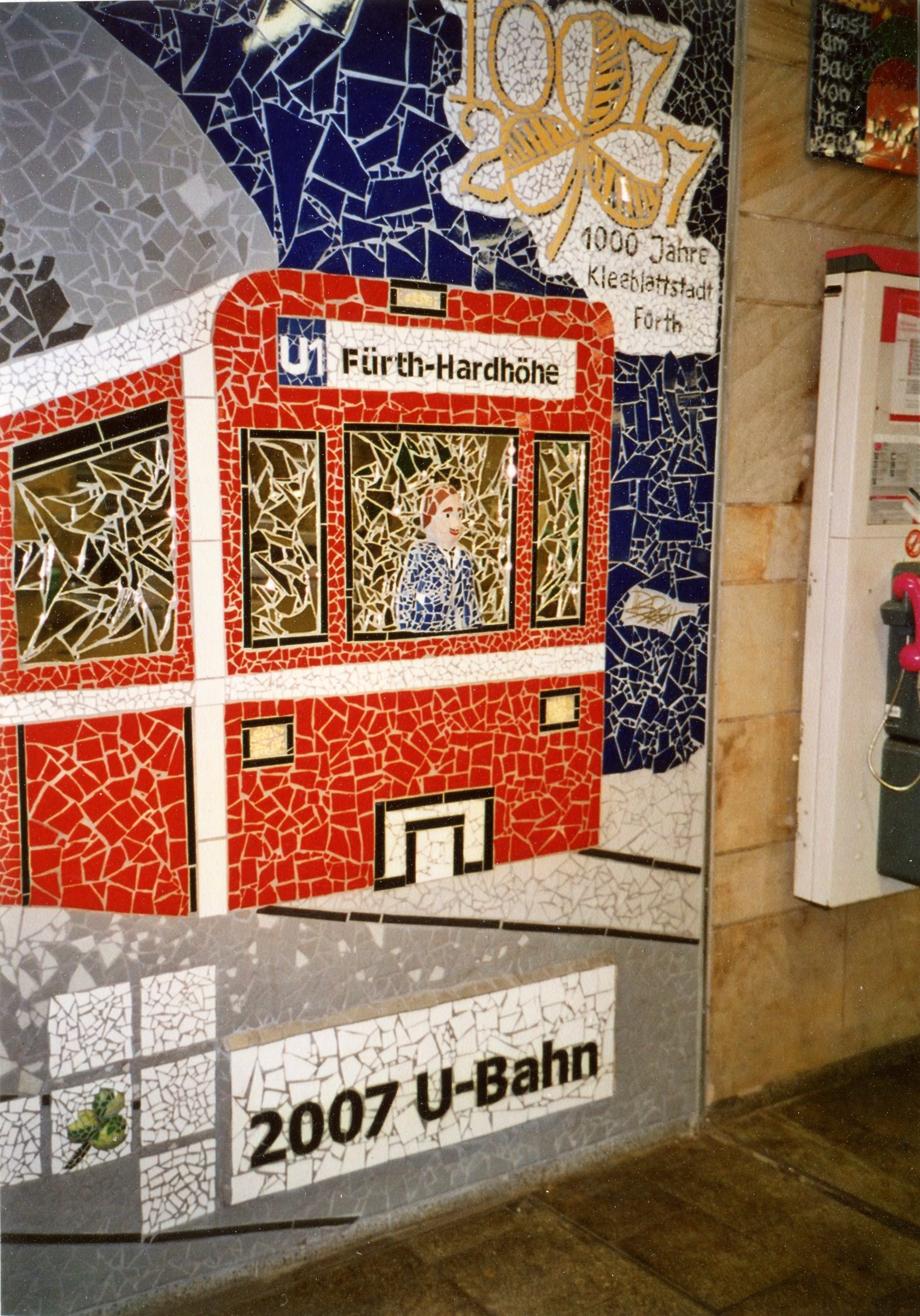 | Beschreibung | Mosaik Wandbild Triebwagen DT1 mit Zielschild U-Bahnhof Hardhöhe im U-Bahnhof Jakobinenstraße von Iris Rauh im Dezember 2007 | ||