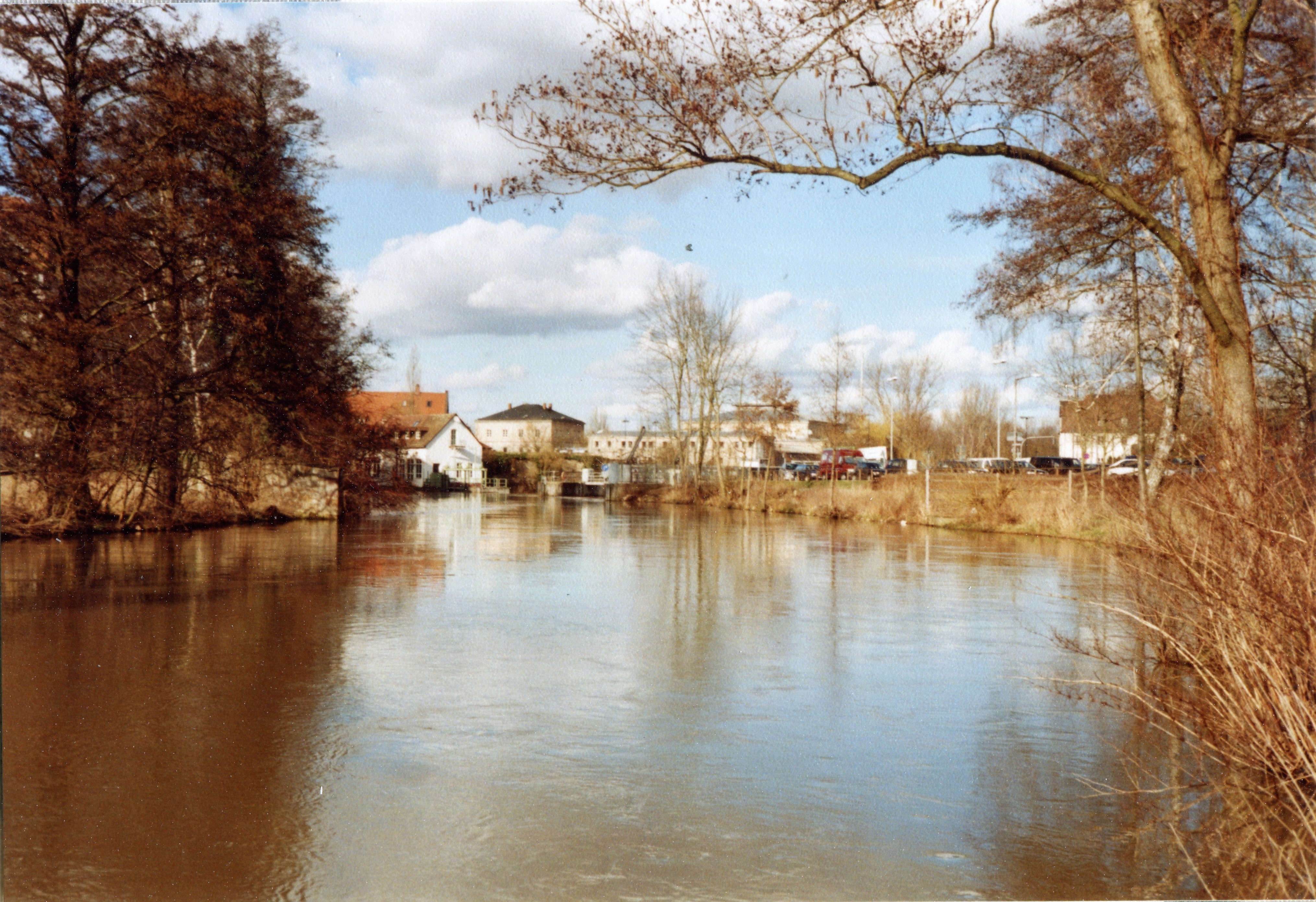 | Beschreibung | an der im Bau befindlichen Uferpromenade. Links Gelände der Kursana Residenz, Bildmitte das Wehr an der Förstermühle, im Februar 2007 | ||