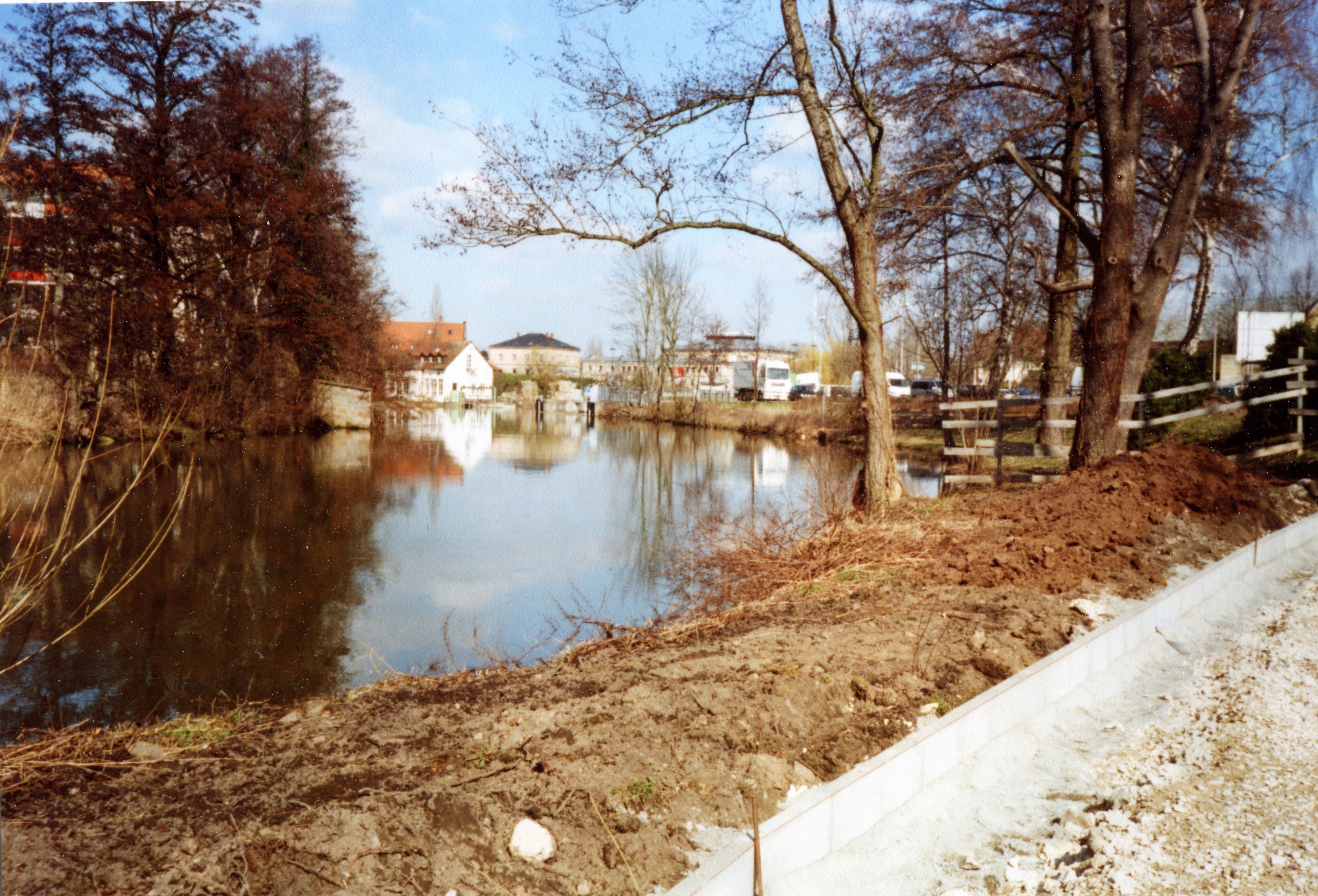 | Beschreibung | an der im Bau befindlichen Uferpromenade. Links Gelände der Kursana Residenz, Bildmitte das Wehr an der Förstermühle, im März 2007 | ||