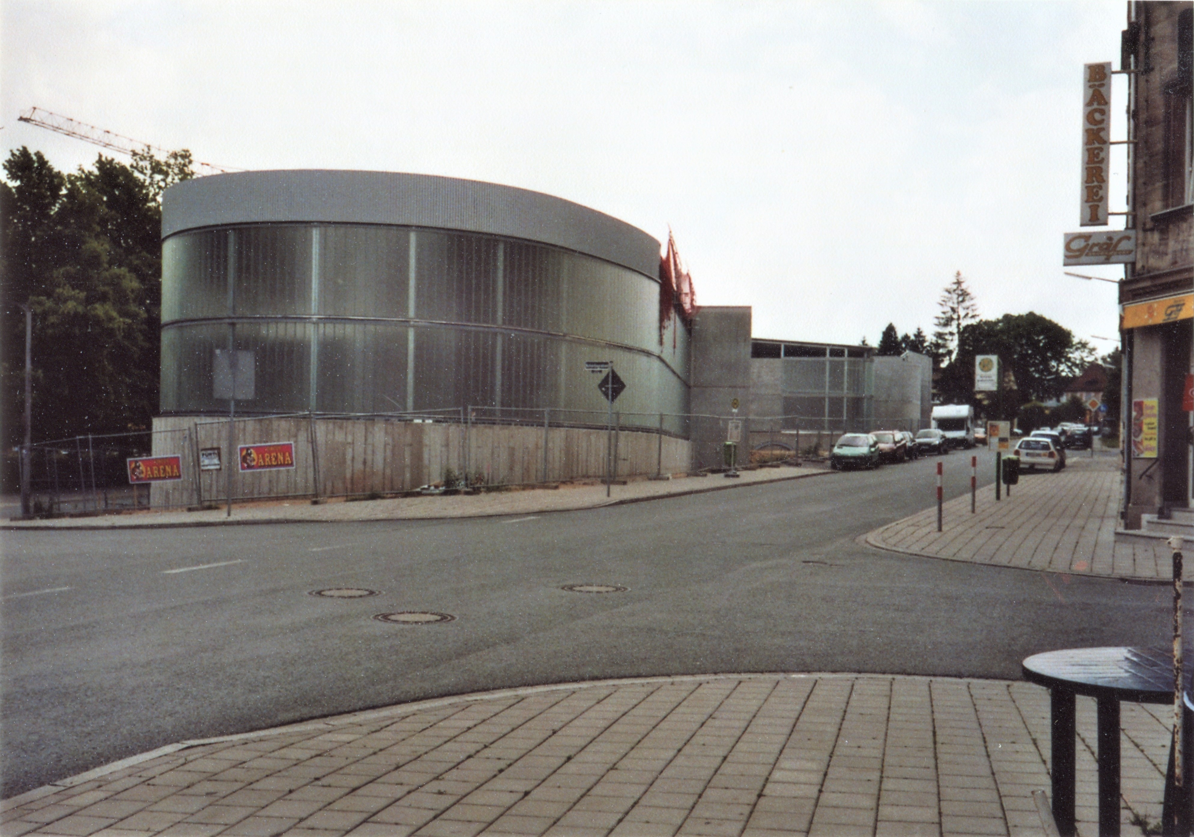 Beschreibungneue "Parkhaus Fürthermare" Rückseite Cadolzburger Straße, Eckhaus Cadolzburger Straße 46, Einmündung rechts Gutenbergstraße im Juni 2007