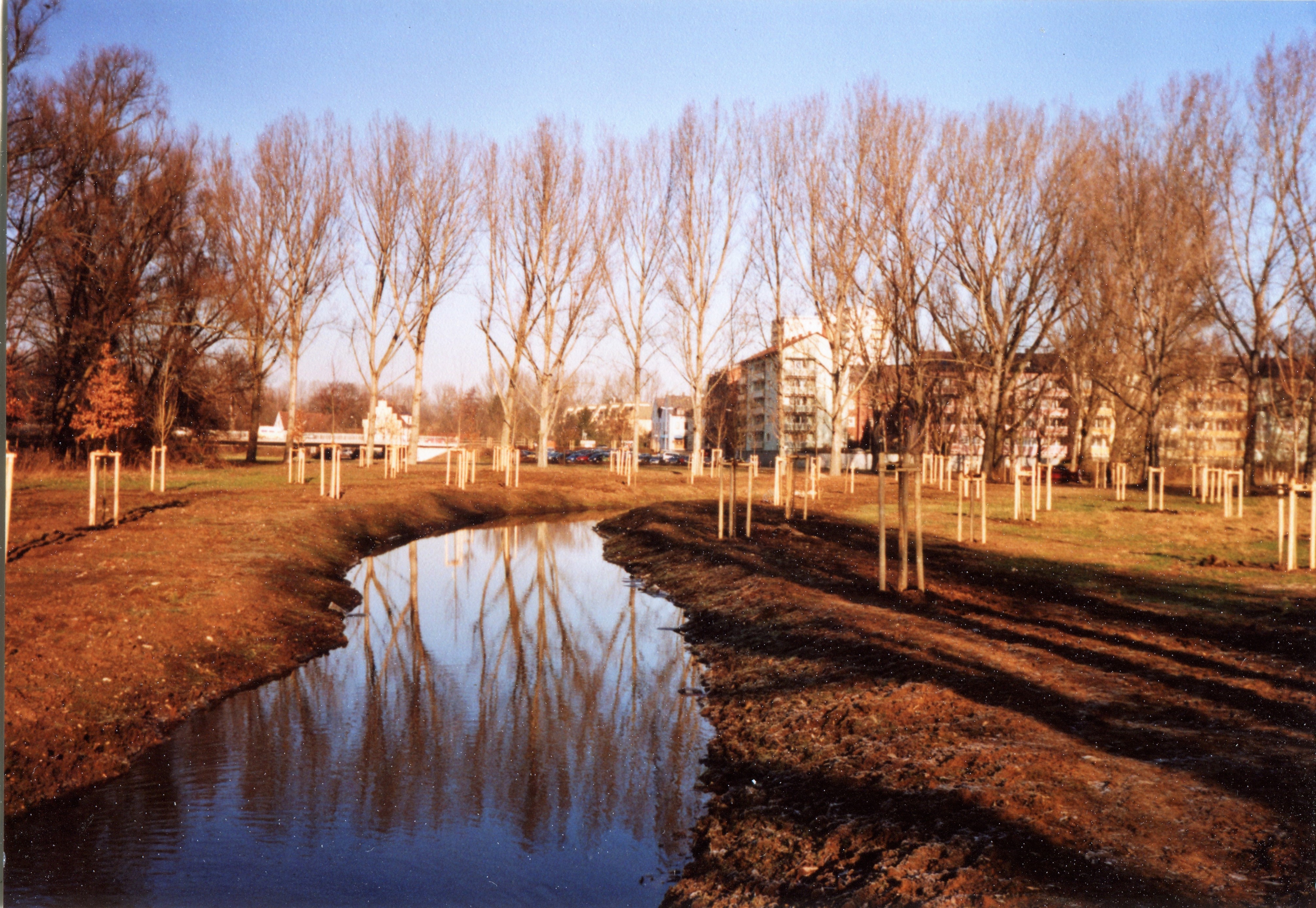 | Beschreibung | Umgehungsgerinne an der Wolfsgrubermühle/Pegnitz zur Fischwanderung mit Bäumen des neu angelegten Jubiläumshains, Dezember 2007 | ||