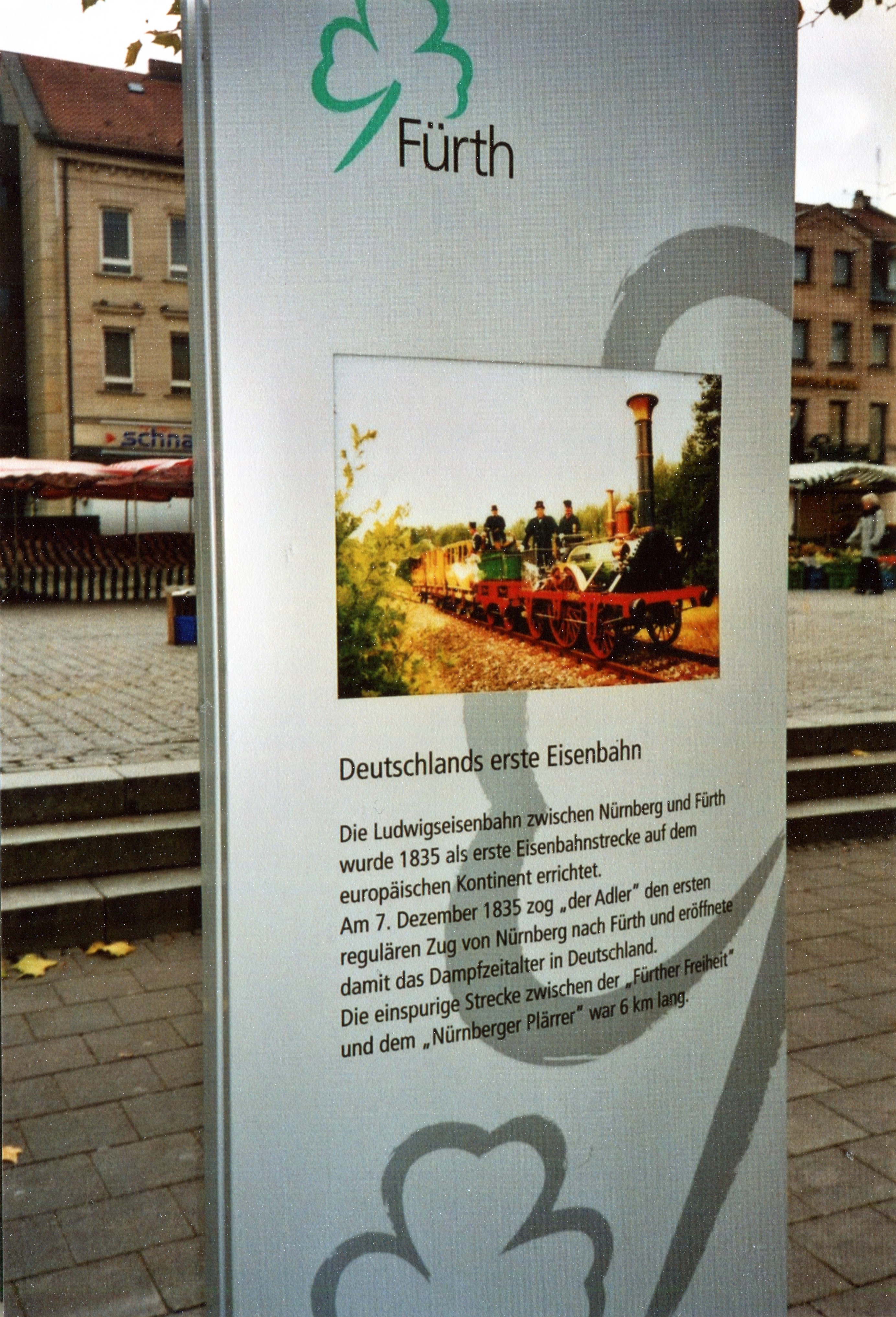 | Beschreibung | Informations Schild an der Fürther Freiheit über die Ludwigseisenbahn und dem hier befindlichen Ludwigsbahnhof im November 2007 | ||