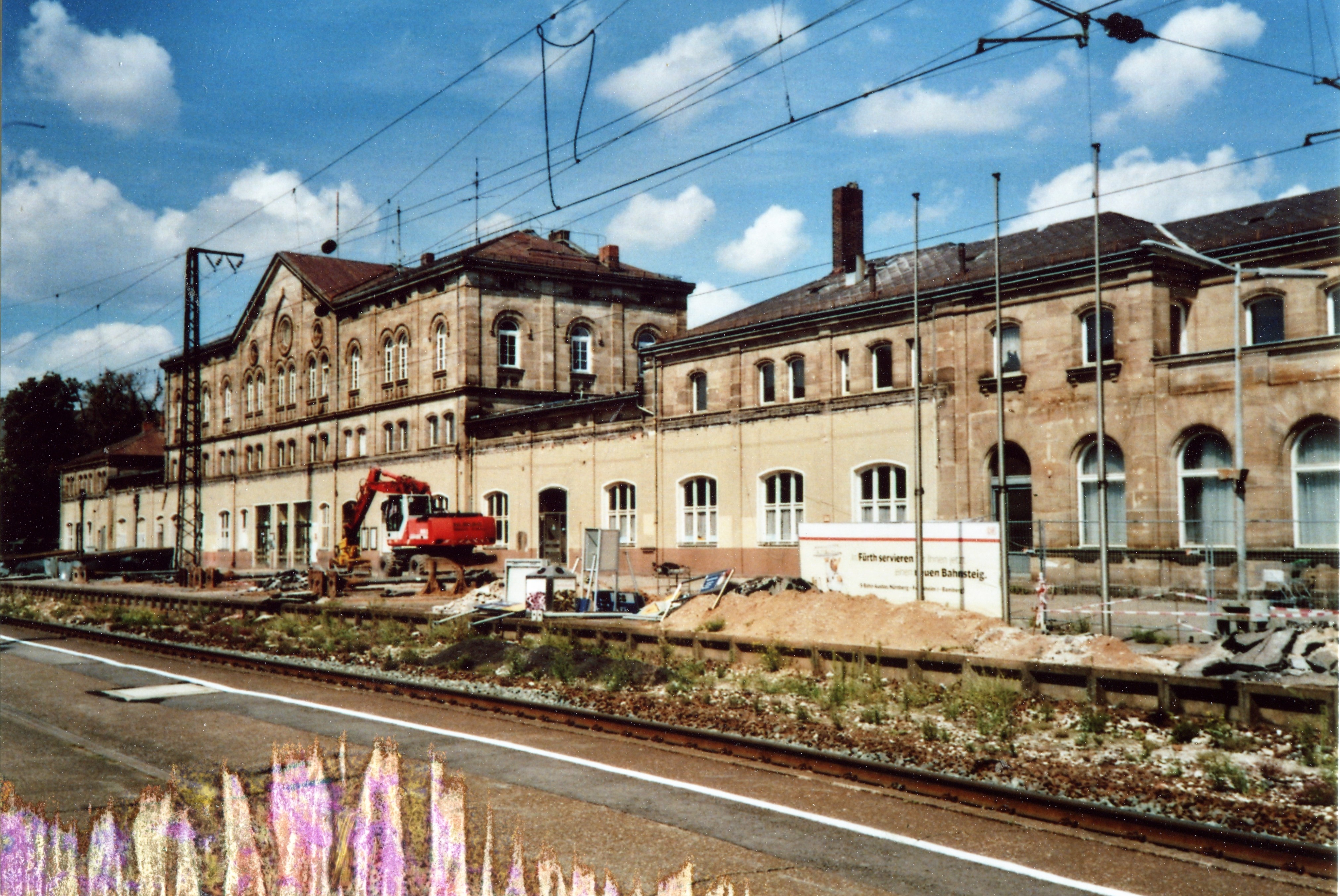 | Beschreibung | Hauptbahnhof Fürth - Abbruch Bahnsteig Gleise 1+2 mit Überdachung und den alten gusseisernen Säulen der ehem. Fa. Spaeth Dutzendteich für den Neubau der S-Bahn Gleise und neuem Bahnsteig an gleicher Stelle im August 2010 | ||
