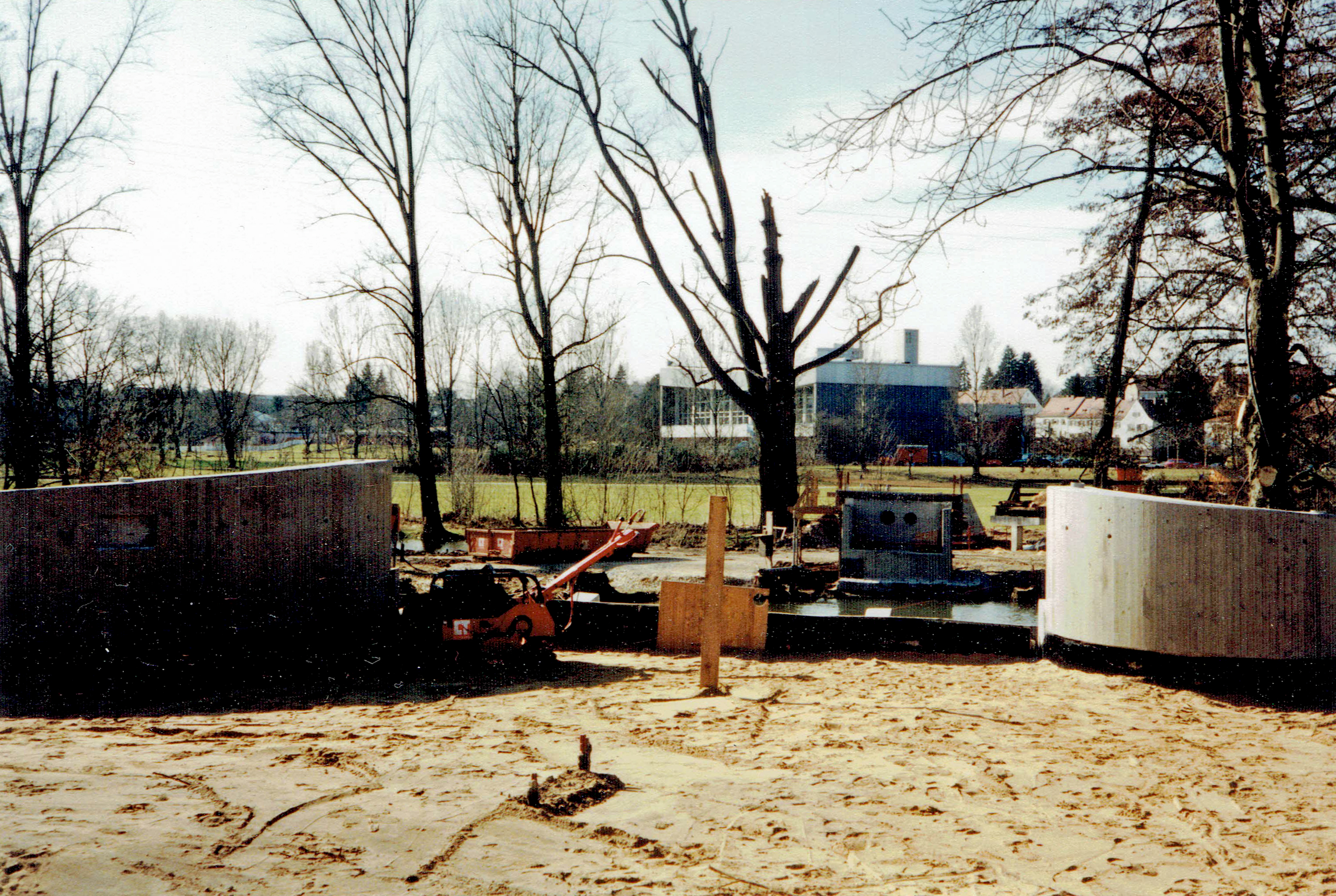 | Beschreibung | Neubau der Hardsteg-Brücke über die Rednitz, im Hintergrund das Fürther Hallenbad, Feb. 1994 | ||