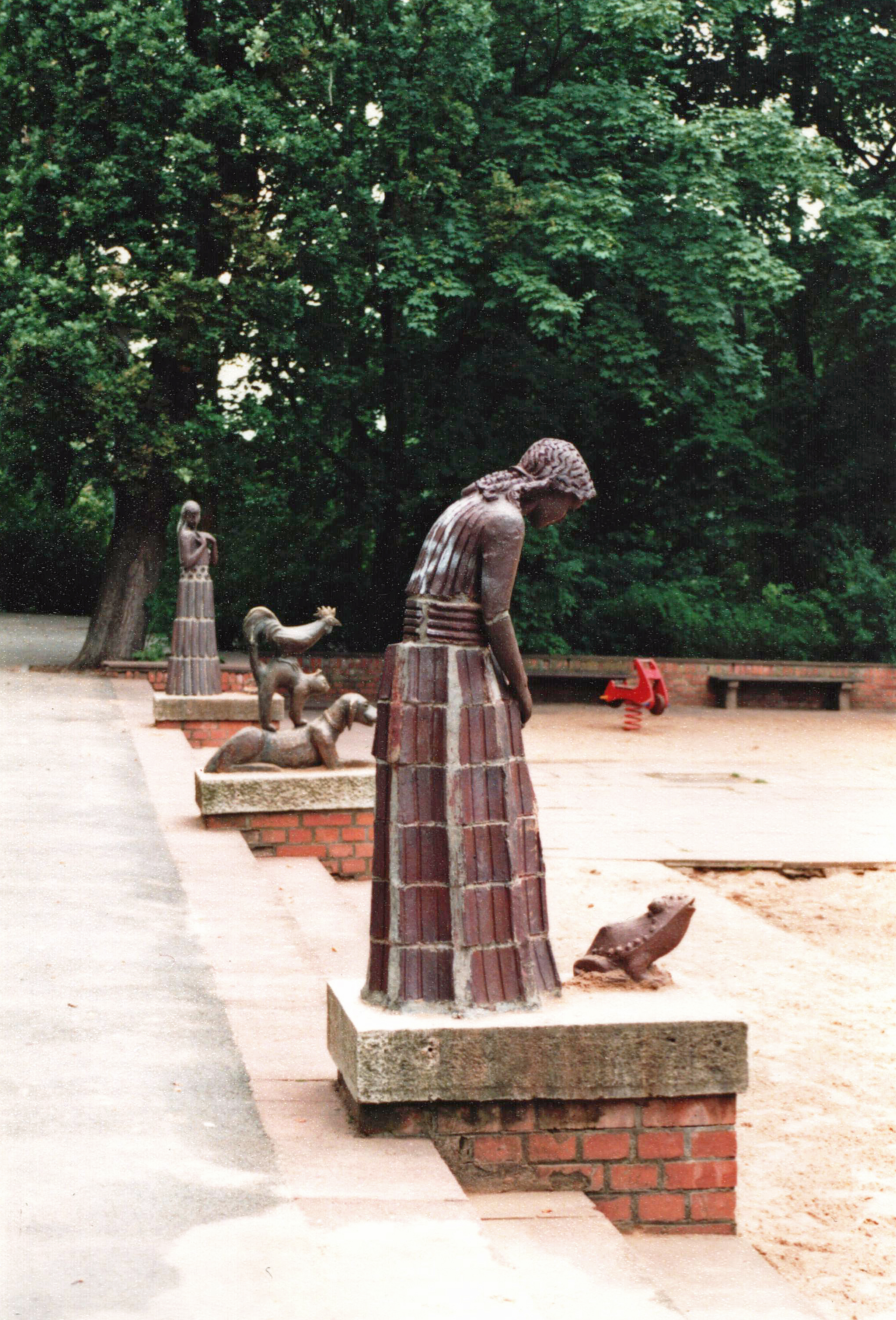 | Beschreibung | Freiplastiken aus der Märchenserie von Gudrun Kunstmann, ursprünglich alle aus Terrakotta, August 1994 | ||