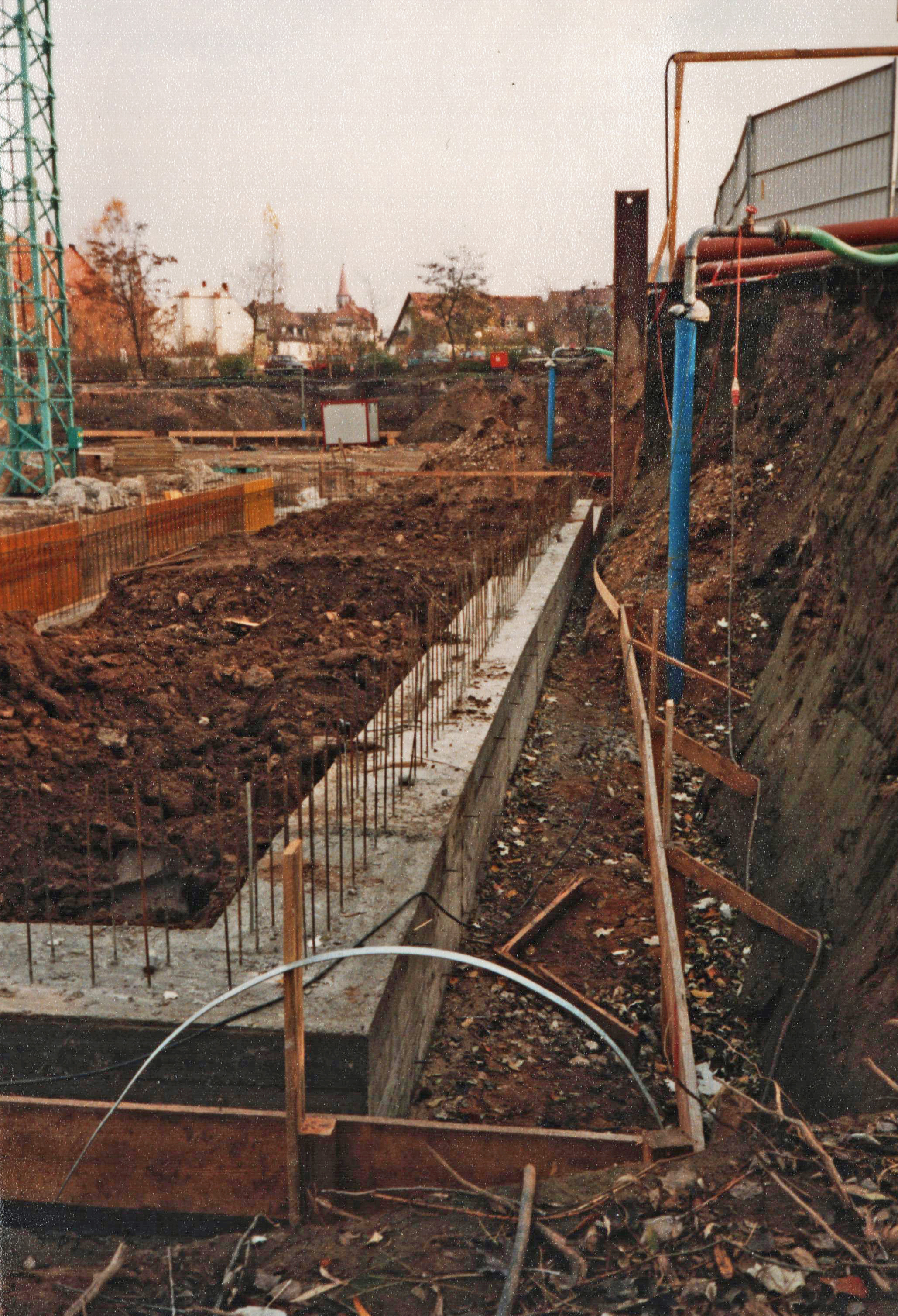 | Beschreibung | Tiefbauarbeiten in der Würzburger Straße. Bau des Hotel am Forum vor der Kursana-Seniorenresidenz, Nov. 1994 | ||