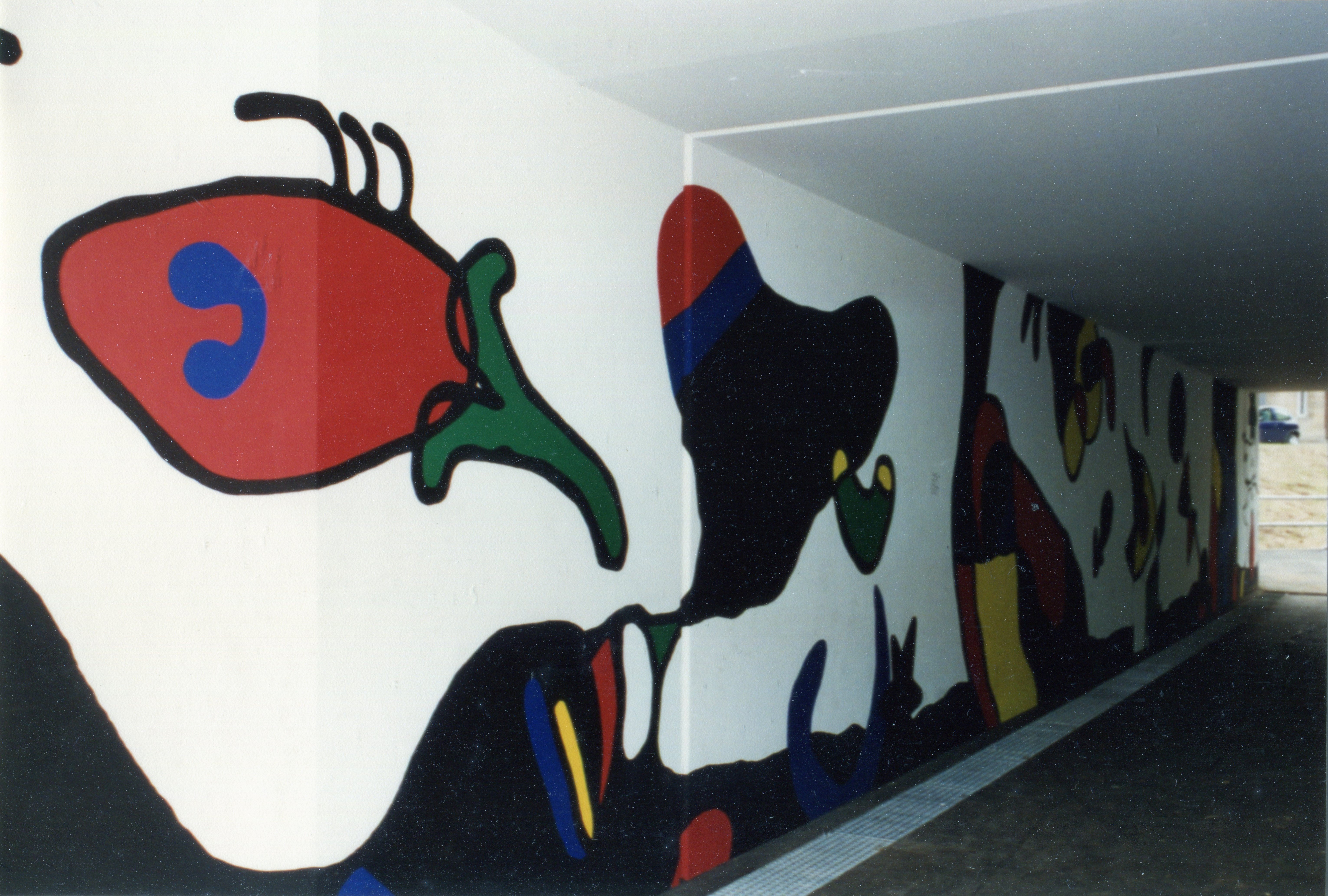 | Beschreibung | Die Unterführung Schießplatz unter der Kapellenstraße kurz nach ihrer Eröffnung mit der Ausmalung der Innenwände von Schülern des Hardenberg Gymnasiums, Aug. 1996 | ||