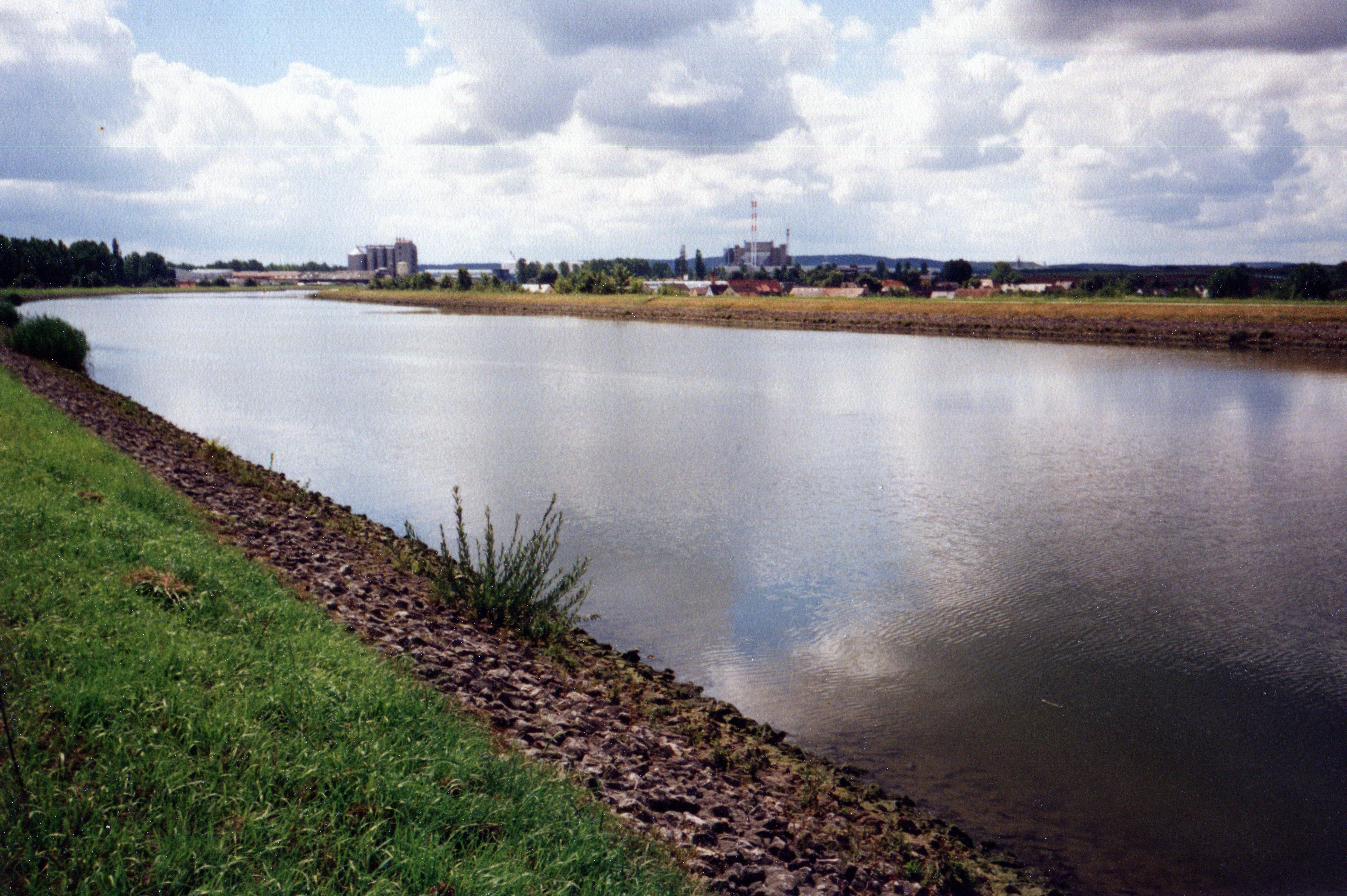 | Beschreibung | Blick Höhe Solarberg auf den Main-Donau-Kanal mit Gebäuden von Atzenhof. Im Hintergrund links der Hafen Fürth und rechts die 2018 abgerissene Müll-Schwelbrennanlage, heutiger Standort der Firma Nordfrost im August 1996 | ||