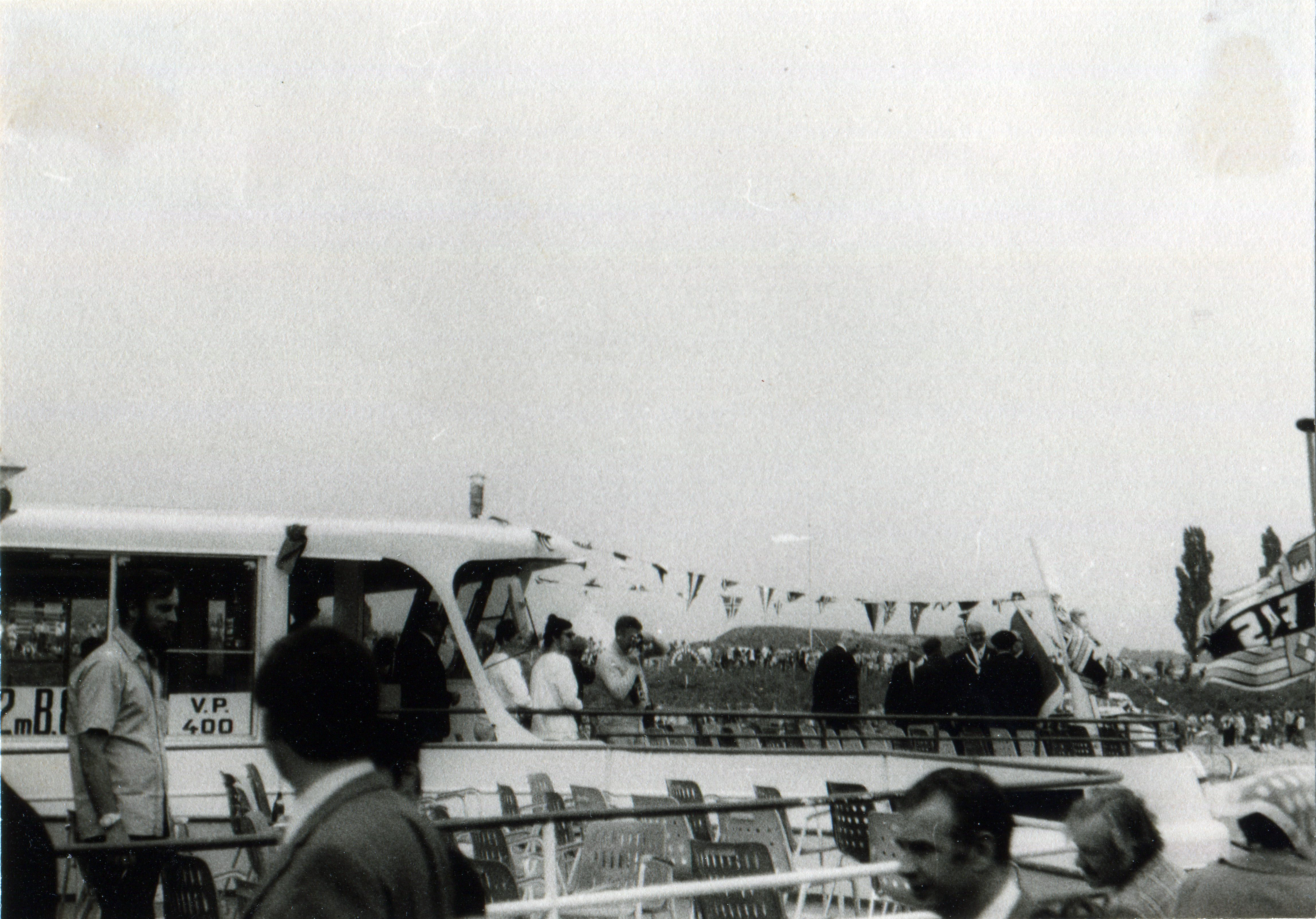 | Beschreibung | OB Kurt Scherzer und BM Heinrich Stranka (mit Amtskette) auf dem Schiff Franconia zur Eröffnungsfeier des Fürther Hafens am 15. Juli 1972 | ||