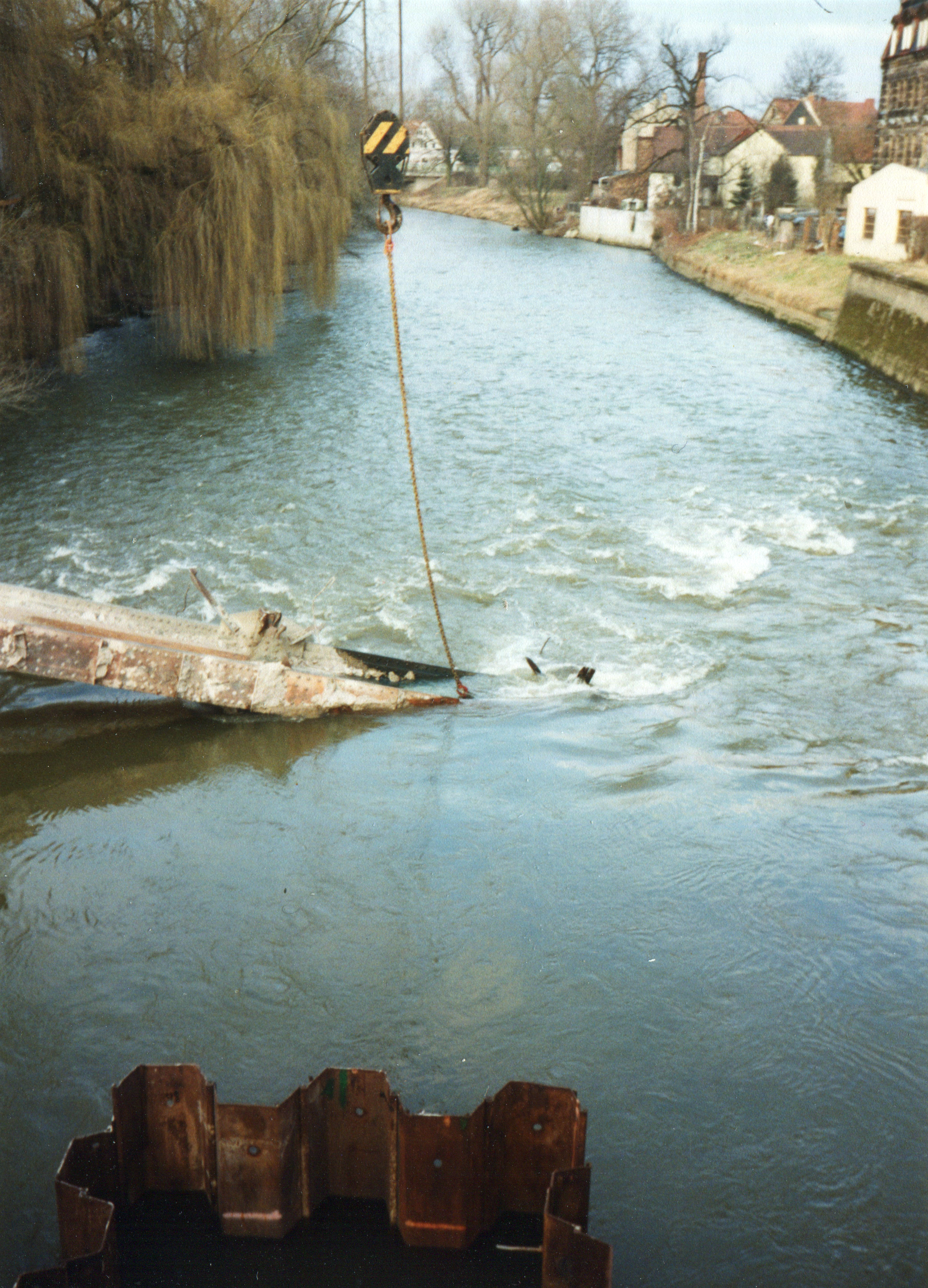 | Beschreibung | Abbrucharbeiten an der alten Maxbrücke während der Bauzeit der U-Bahnhaltestelle Stadthalle vor dem heutigen Kulturforum, Feb. 1997 | ||