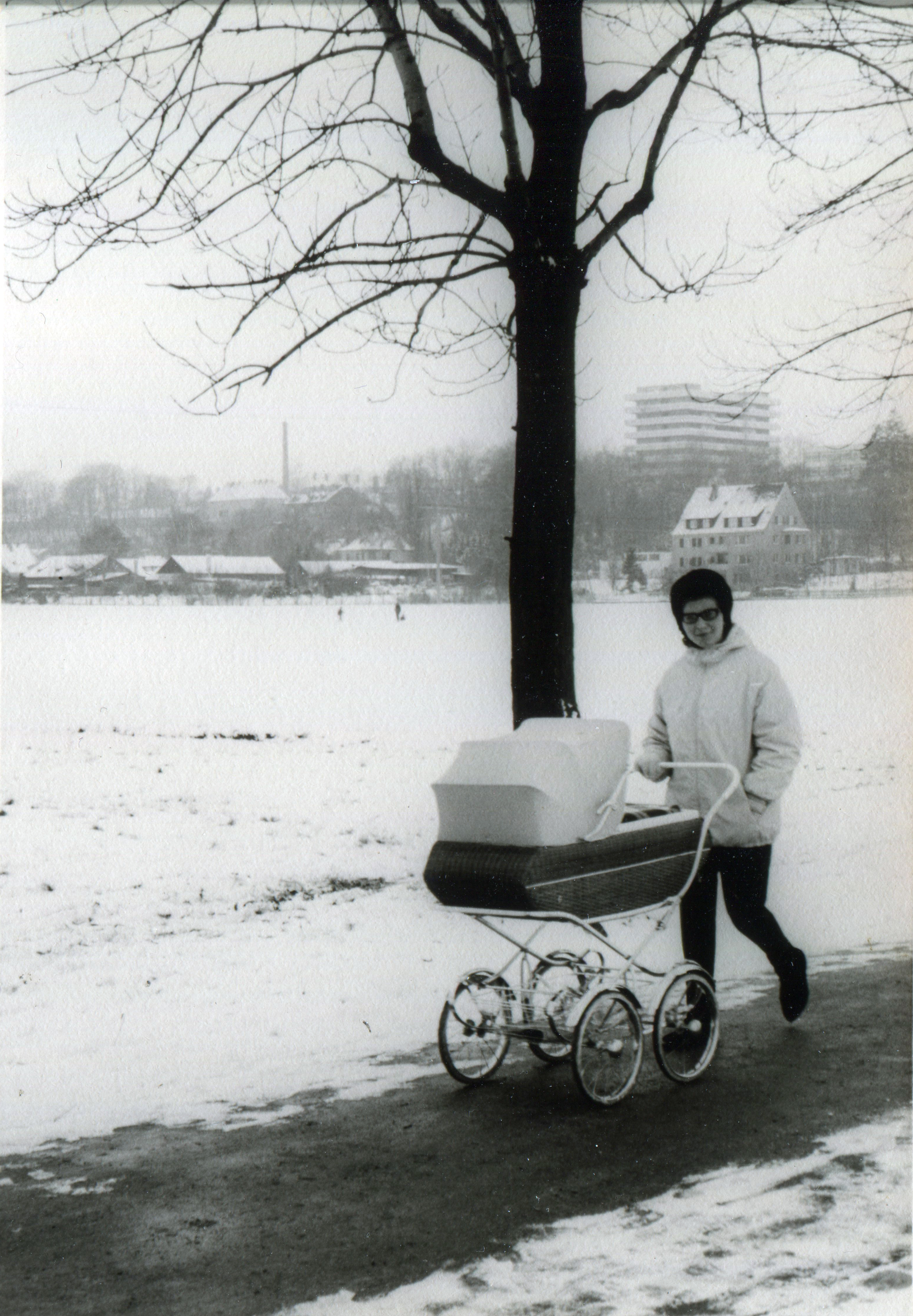 | Beschreibung | Die neu errichtete Kinderklinik im Hintergrund und der Schlot der Brauerei Berg Bräu vor der Vacher Straße im Wiesengrund, Jan. 1967 | ||