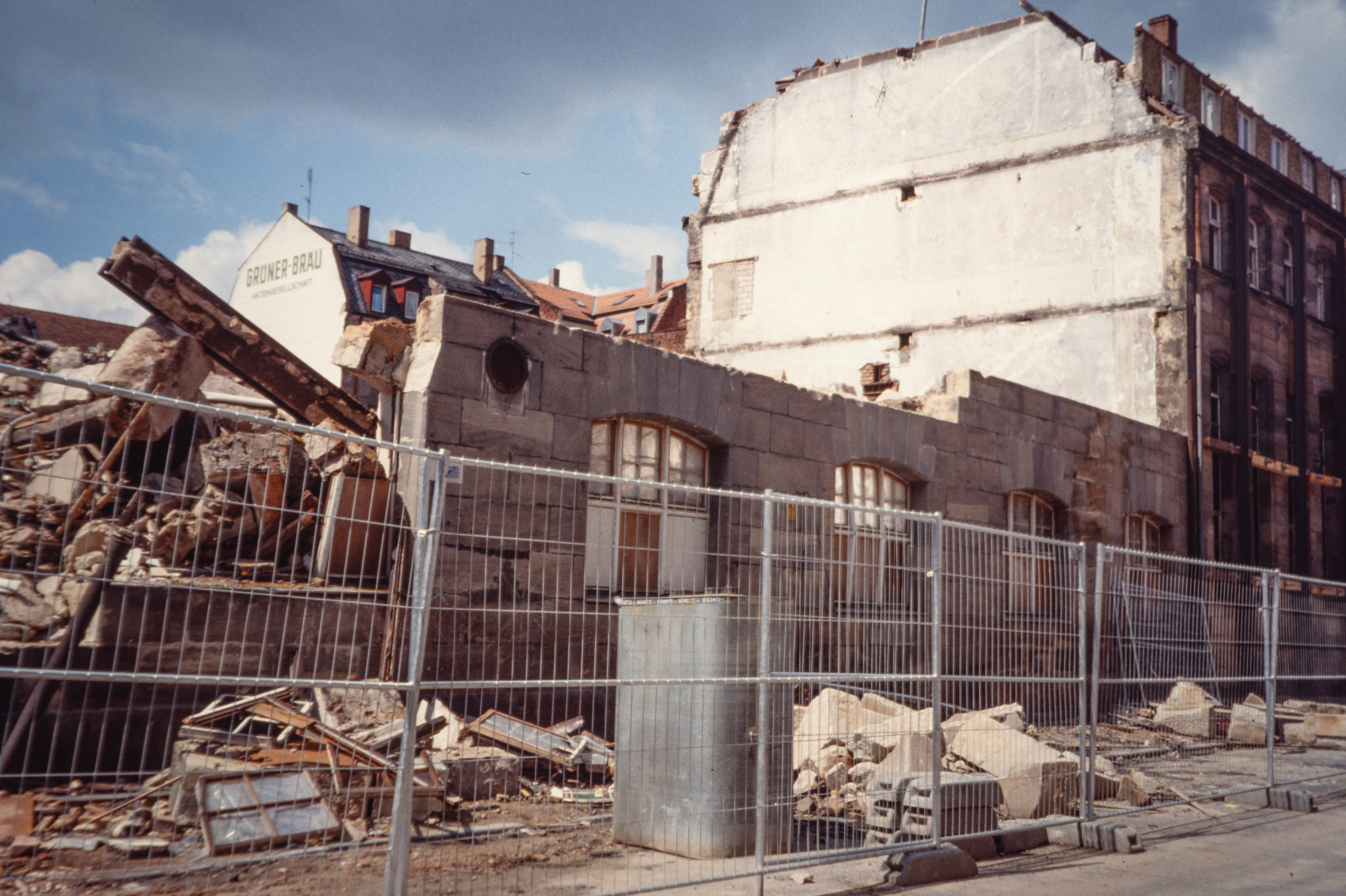 | Beschreibung | Abriss Grüner Bräu, Rosenstraße, 5.5.1990 | ||