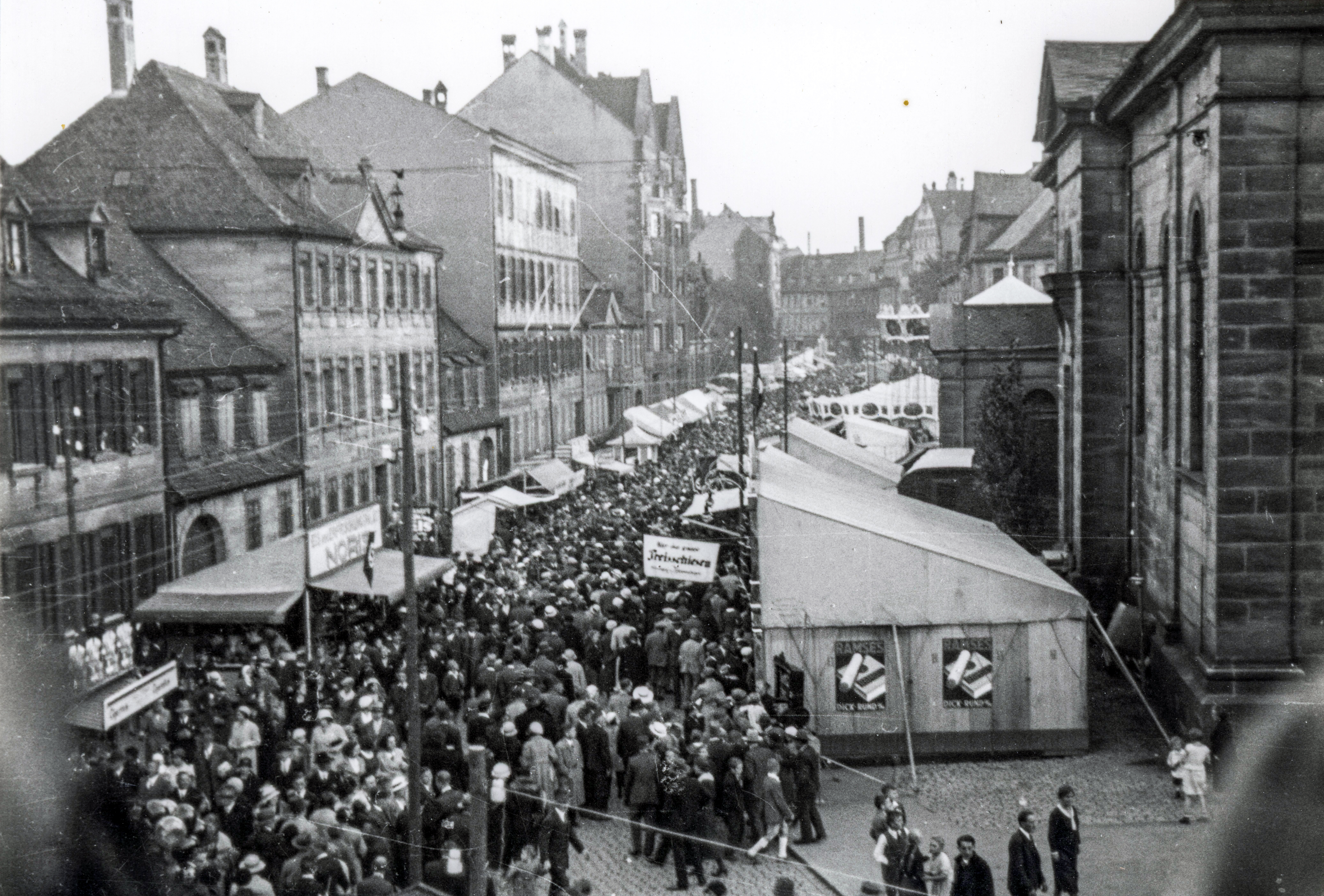 | Beschreibung | Blick in die Königstraße während der Kirchweih, 1934 | ||