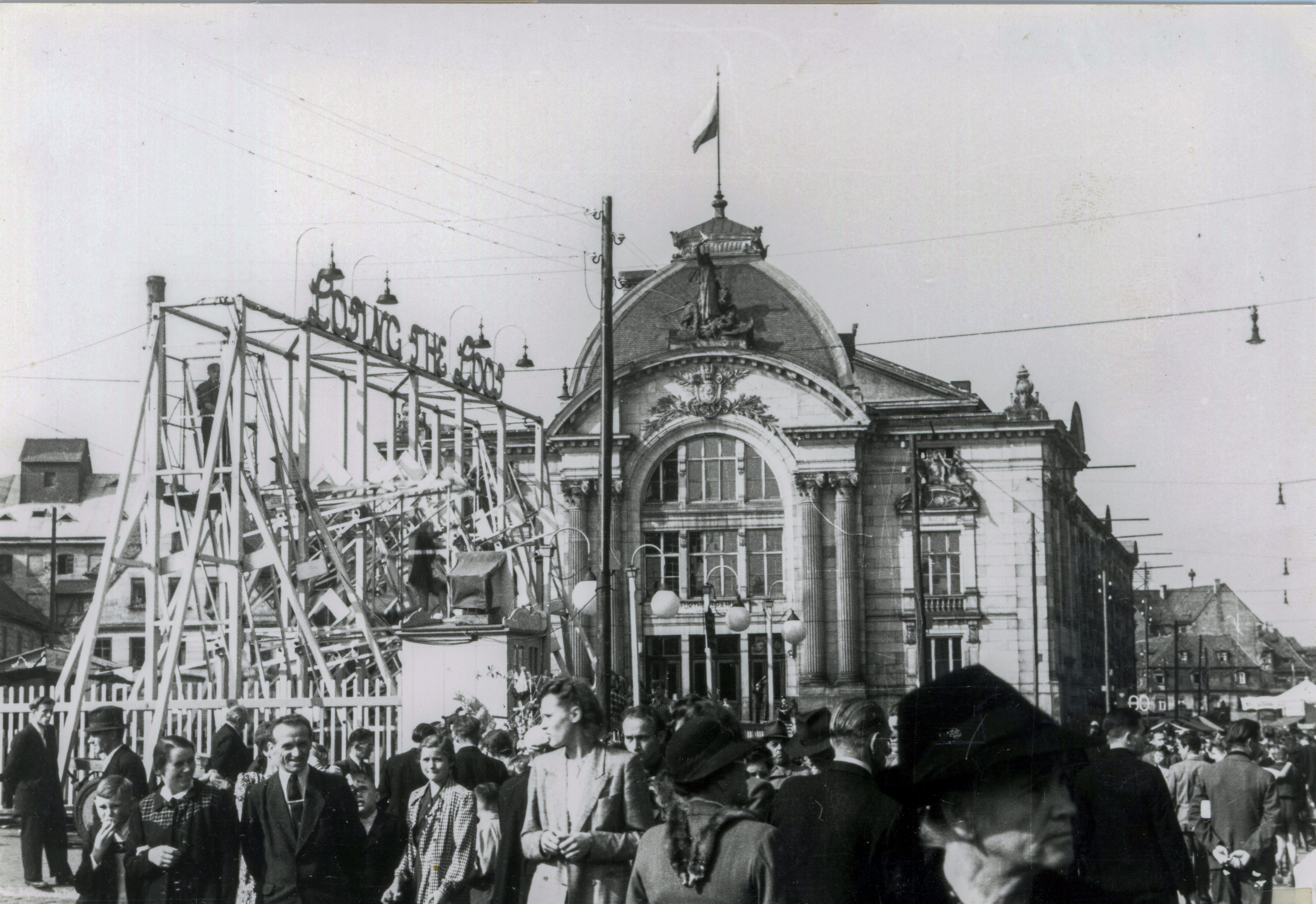 | Beschreibung | Michaelis-Kirchweih vor dem Stadttheater, 1949 | ||