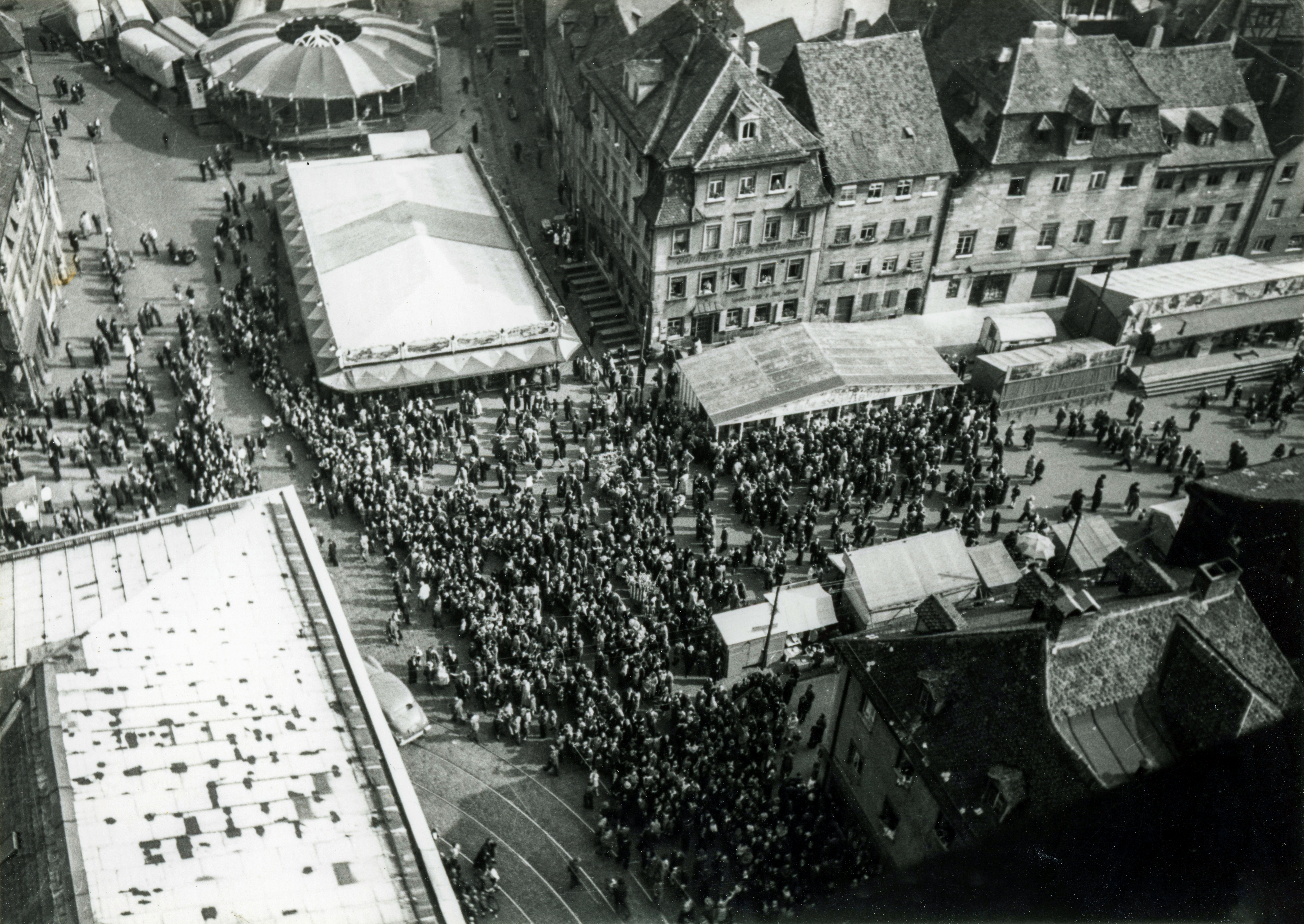 | Beschreibung | Michaelis-Kirchweih vor dem Rathaus, 1949 | ||