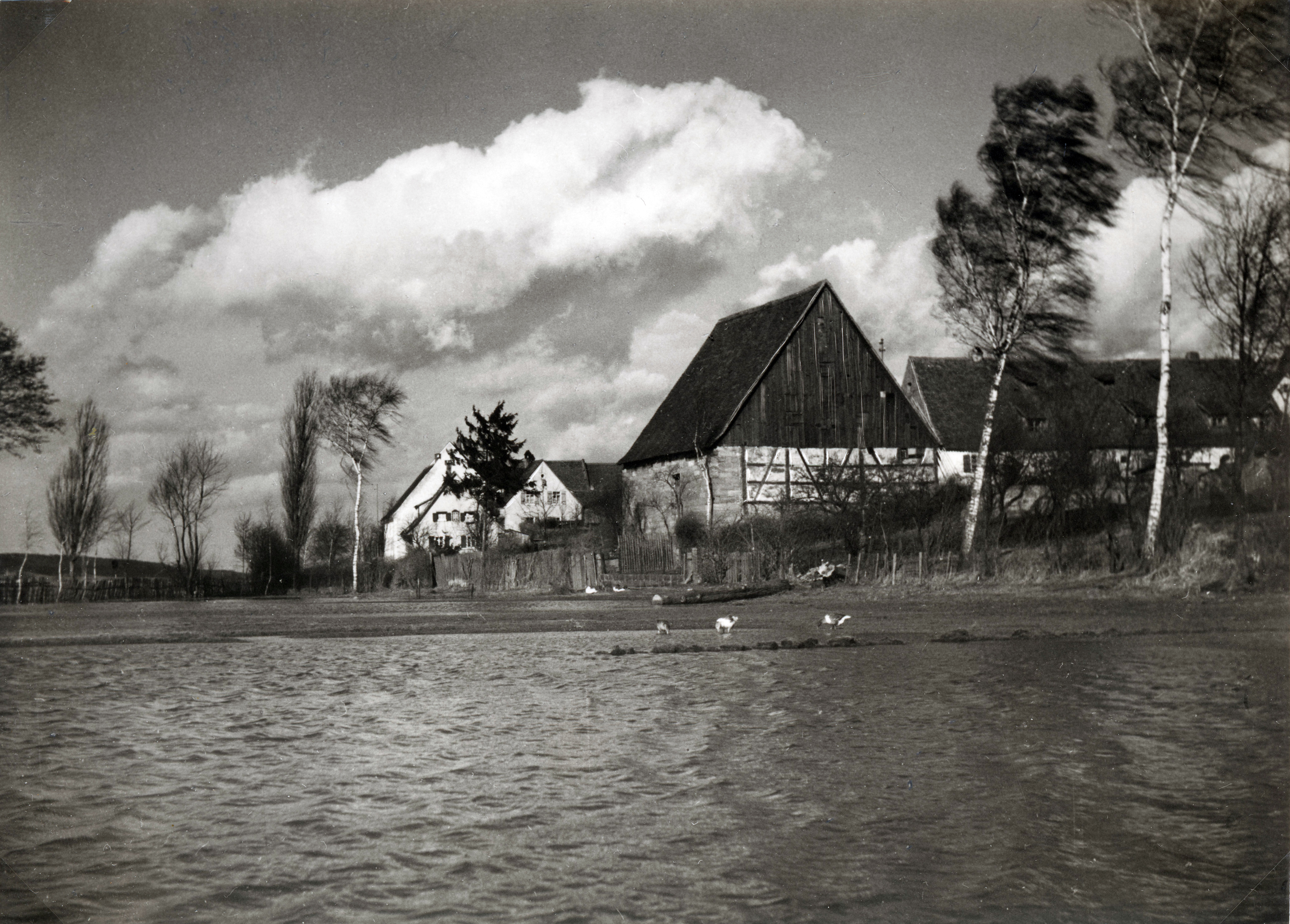 | Beschreibung | Haus und Stadel von Fritz Muggenhöfer mit Hochwasser im Herbst 1936 | ||