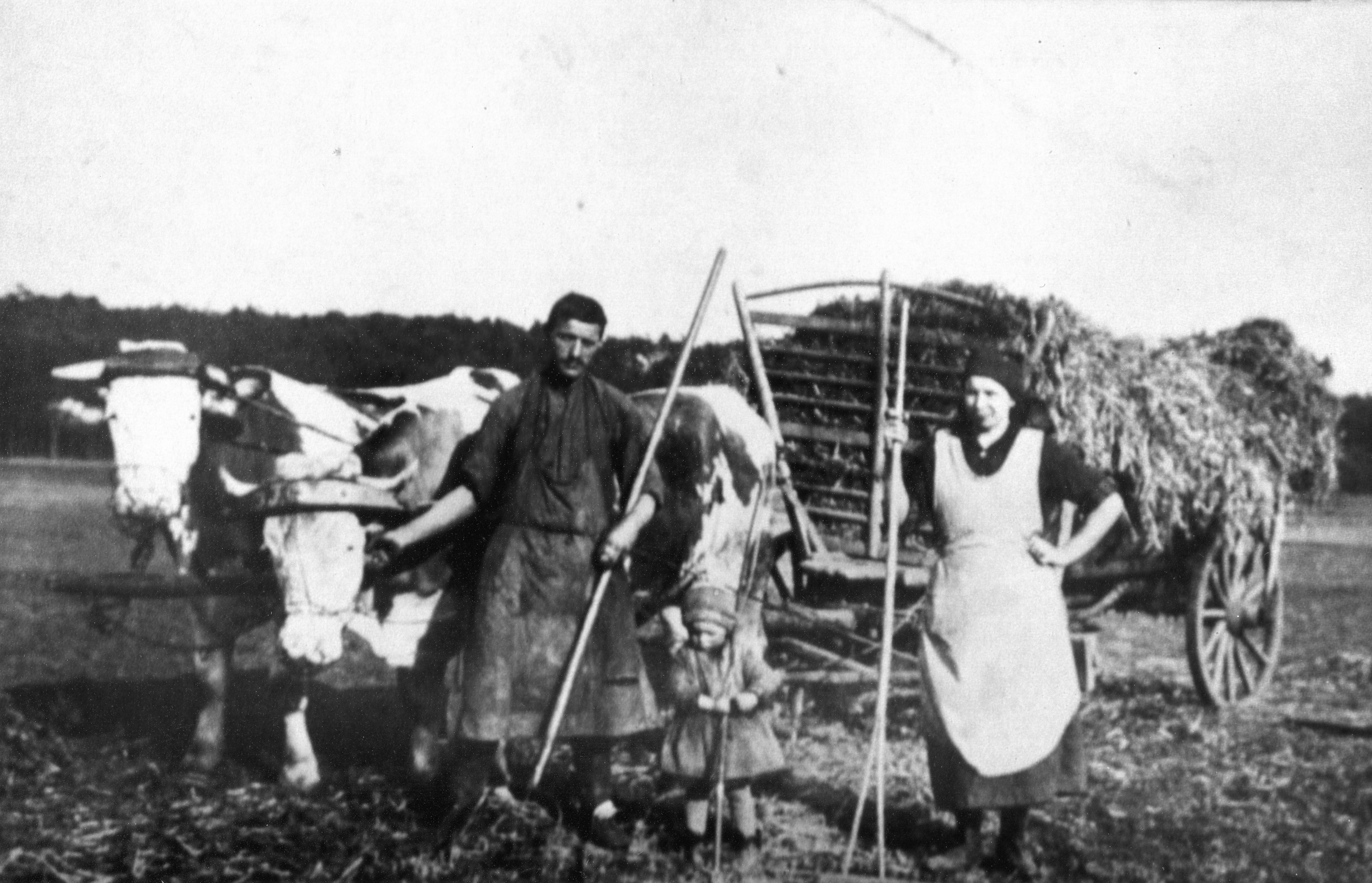 | Beschreibung | Fritz Muggenhöfer mit Frau und Tochter Gunda wohnhaft Romminggasse 15 beim Futterholen im Stadelner Wiesengrund, ca. 1925 | ||