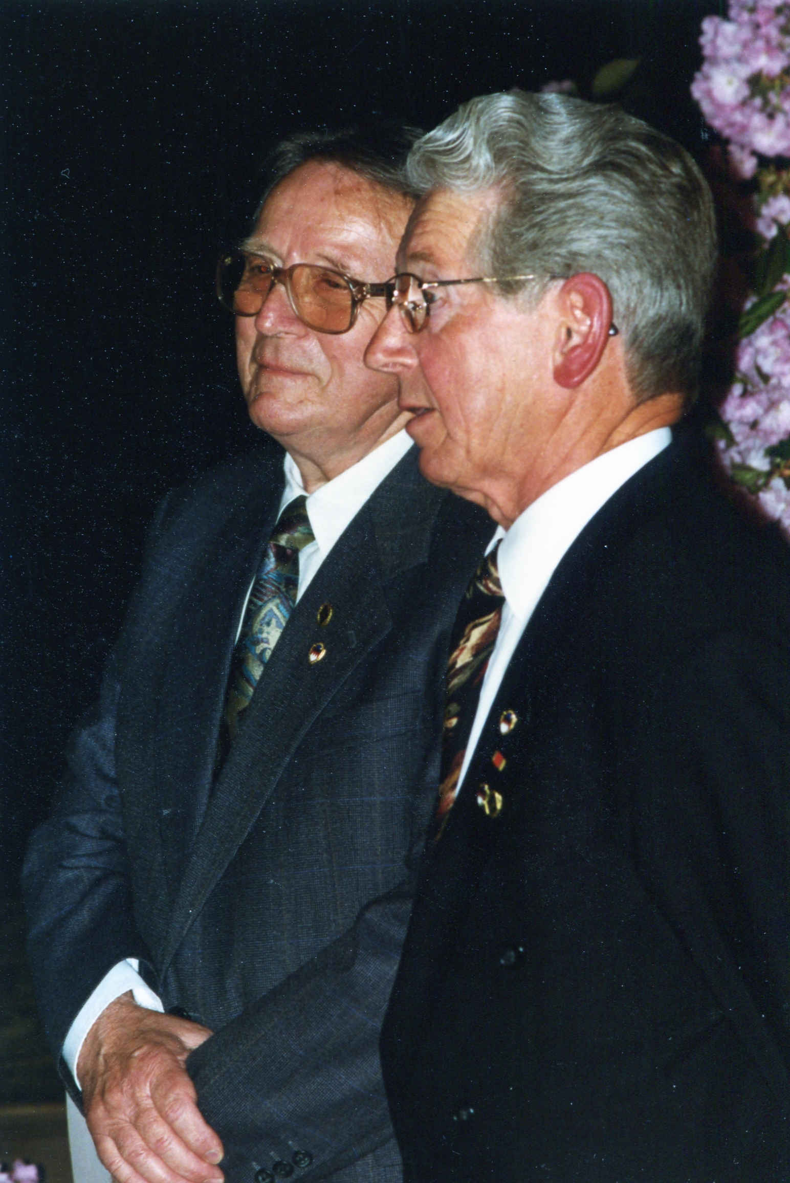 | Beschreibung | die Jubilare für 60 Jahre Mitgliedschaft der früheren Vorstände Georg Mehl (links) und Oskar Schiek (rechts) vom Gesangverein Stadeln 2006. | ||