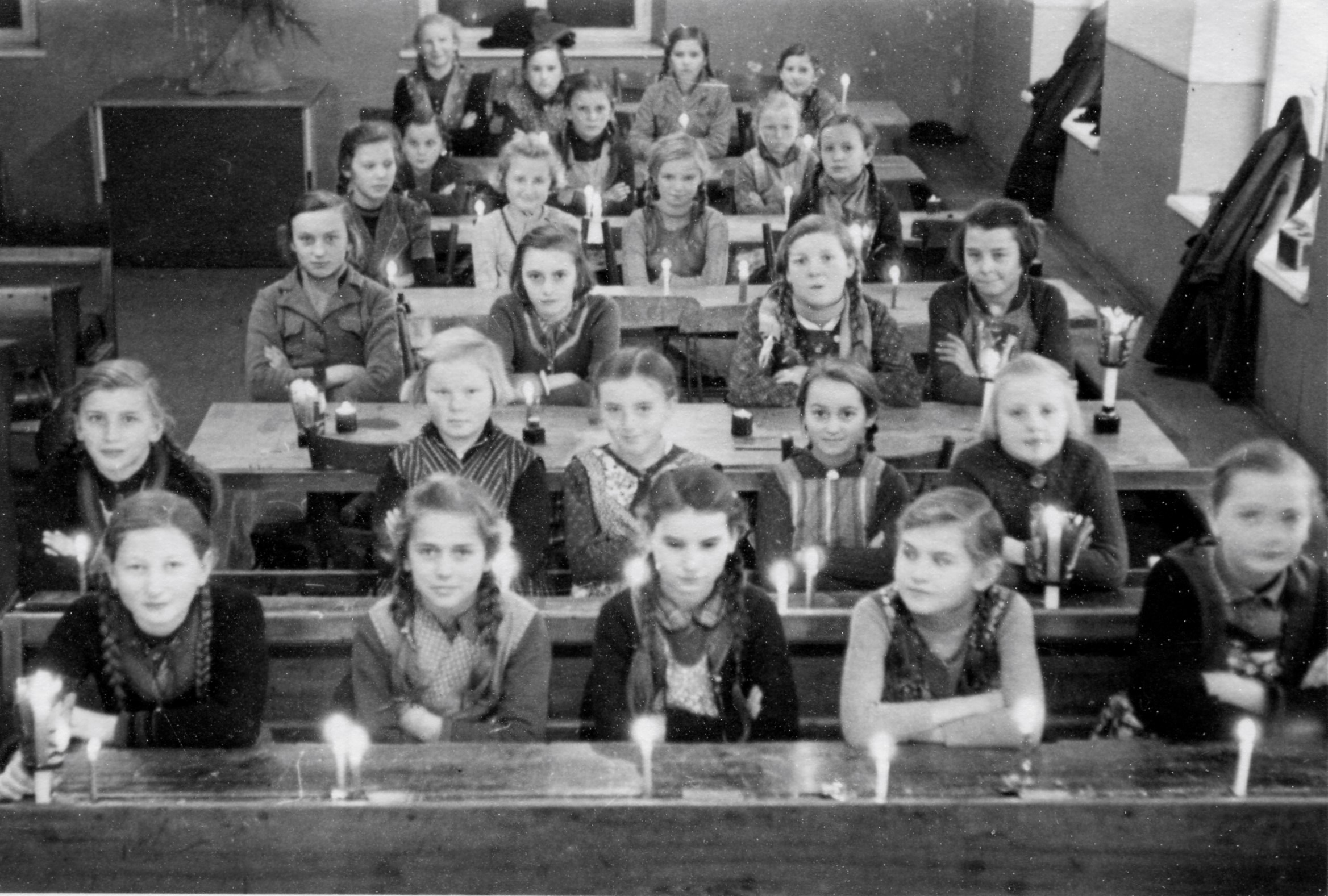 | Beschreibung | Mädchen Schulklasse in Stadeln im heutigen Bürgeramt Nord, Datum unklar, vermutlich um 1937 | ||