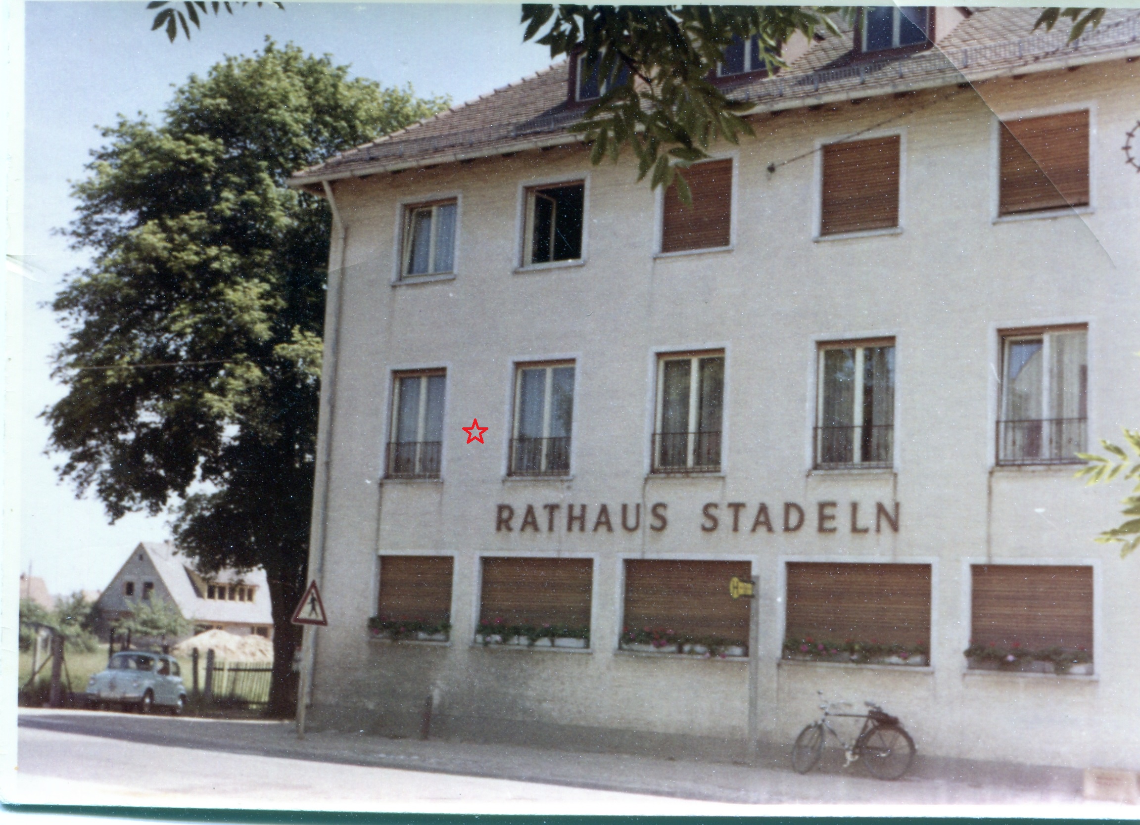 | Beschreibung | das ehem. Rathaus Stadeln mit mächtigen Laubbaum, hinter den beiden Fenster mit Stern befindet sich das eine Klassenzimmer, wo die Klassenfotos von 1937+1938 die hier eingestellt sind, gemacht wurden. Aufnahme von 1960 | ||