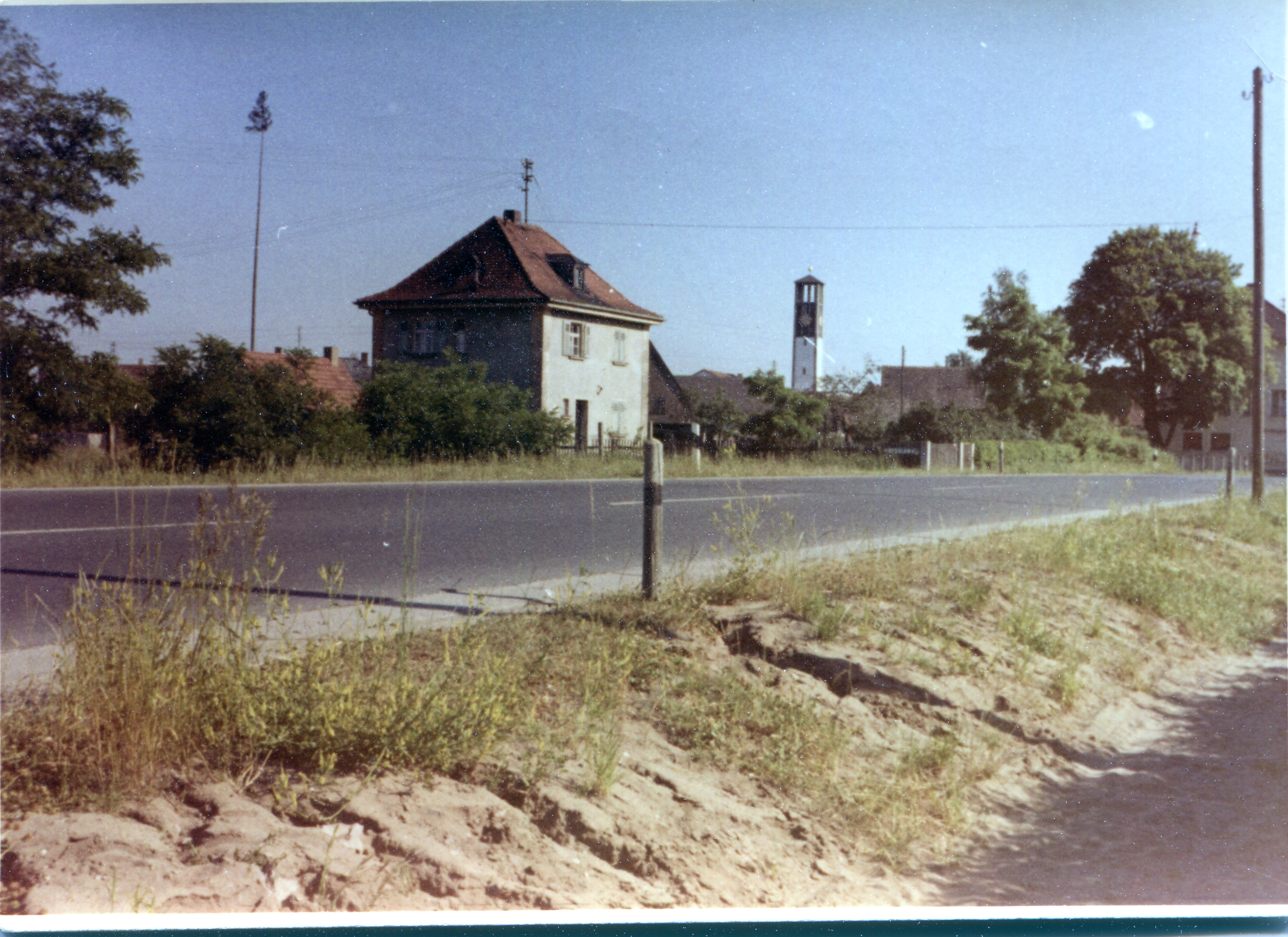 | Beschreibung | nördl. Ortseingang von Stadeln mit Walmdachgebäude Stadelner Hauptstraße 104, Turm der Christuskirche, rechts das Rathaus Stadeln Nr. 96, Aufnahme von 1960 | ||
