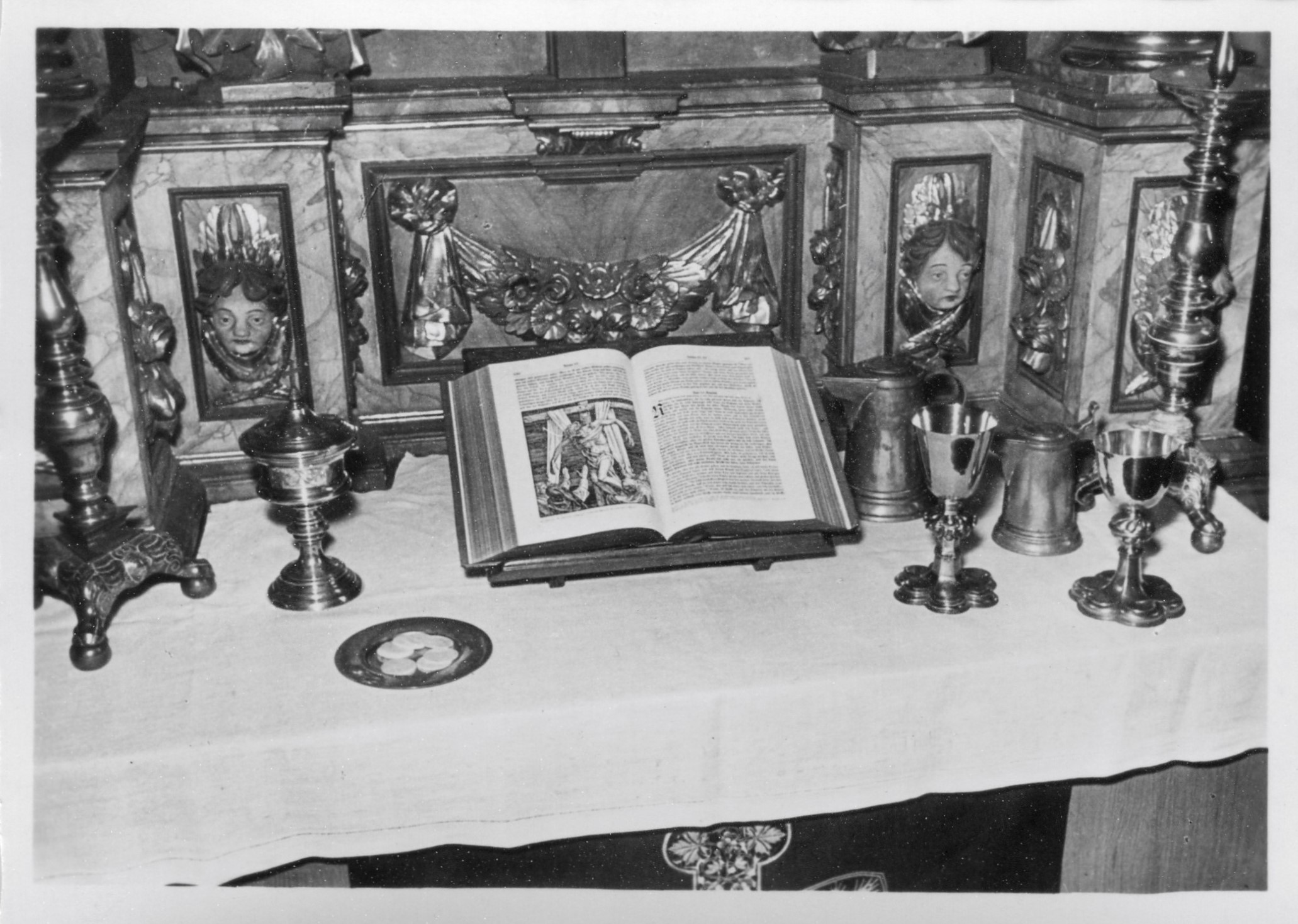 | Beschreibung | Kirche St. Matthäus Vach, Abendmahl Geräte und Bibel, 1935 | ||