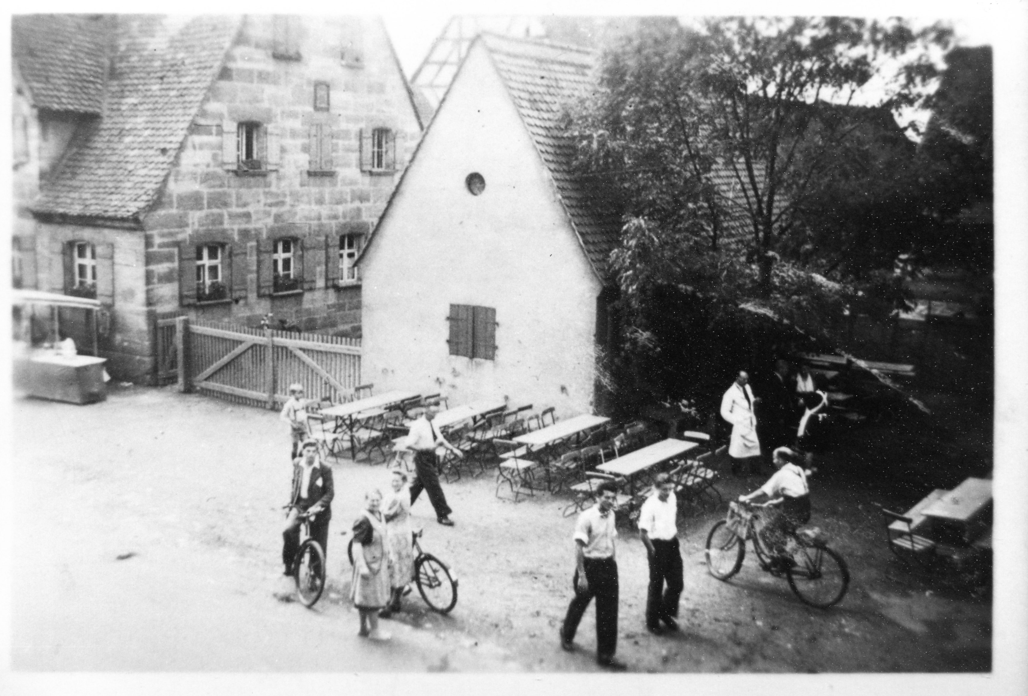 | Beschreibung | Kirchweih Stadeln 1949 vor der Bauernhof Ulrich-Grau rechts ehemaligen Gaststätte Goldener Engel, rechts verdeckt, heute Caruso, in Stadeln | ||