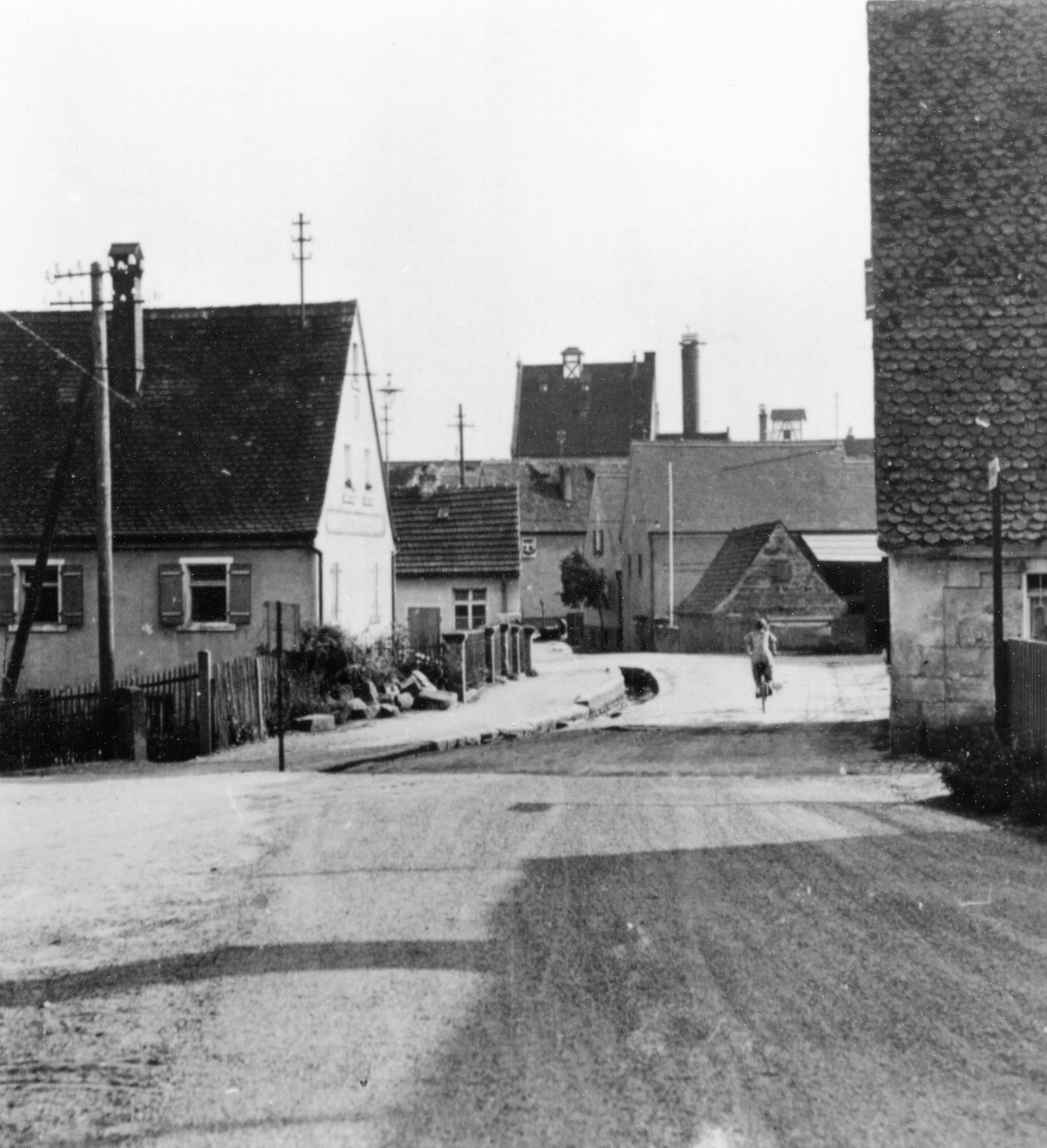 | Beschreibung | Herzogenauracher Straße in Vach mit Dorn-Bräu (Bildmitte) 1936 | ||