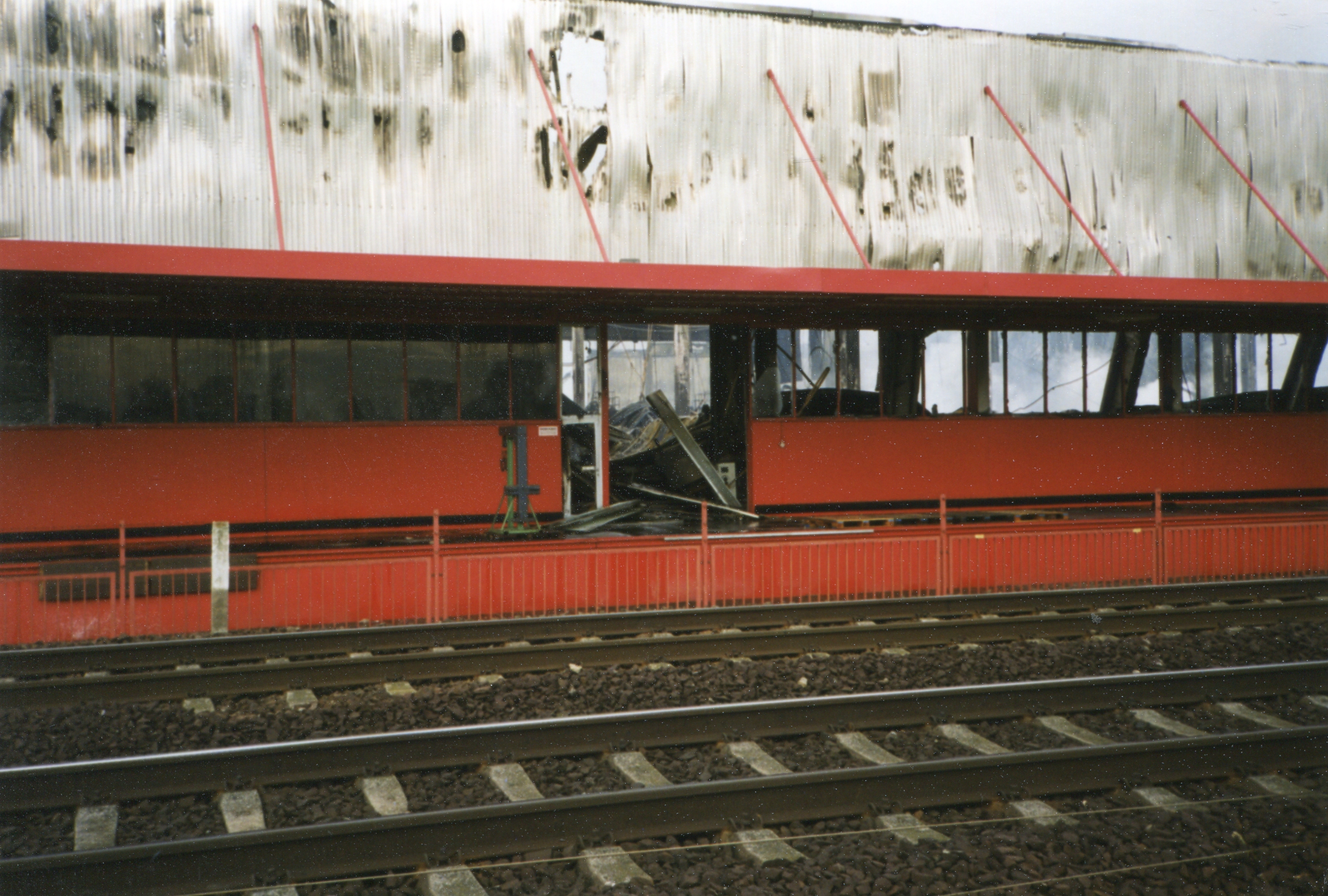 | Beschreibung | abgebrannte Werkhalle der Firma BIG in Stadeln, April 1998 | ||