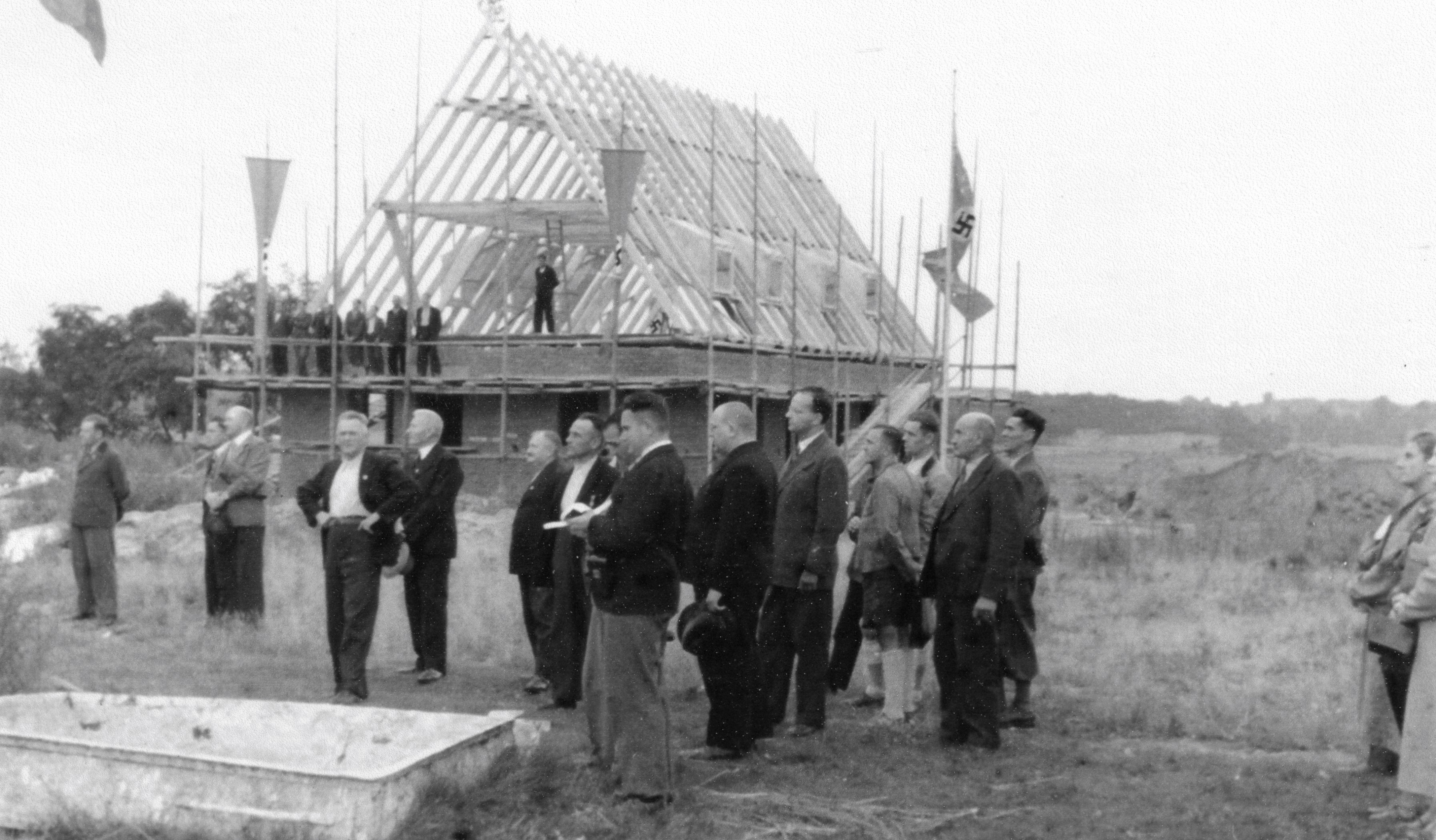 | Beschreibung | Zuschauer beim Richtfest des zukünftigen Kindergarten an der heutigen Karl-Hauptmannl-Straße 7 am 18. August 1939. Im Hintergrund der Regnitzgrund Richtung Flexdorf. | ||