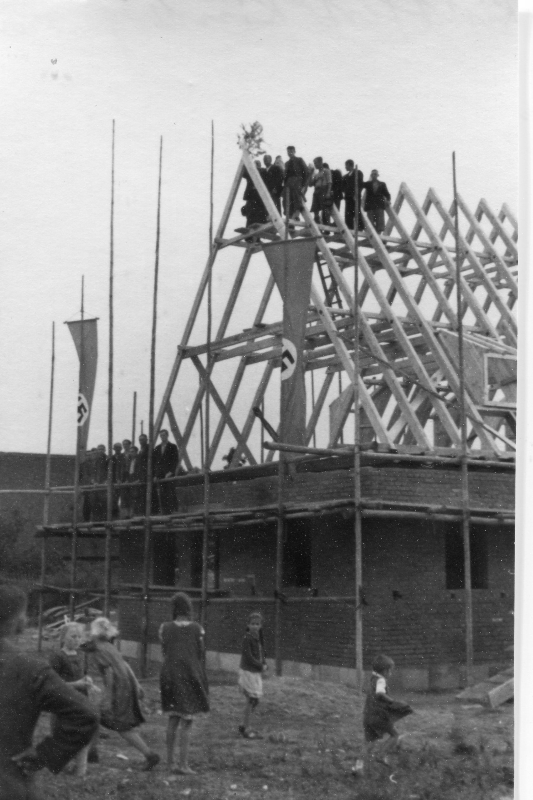 | Beschreibung | Zuschauer beim Richtfest des zukünftigen Kindergarten an der heutigen Karl-Hauptmannl-Straße 7 am 18. August 1939. | ||