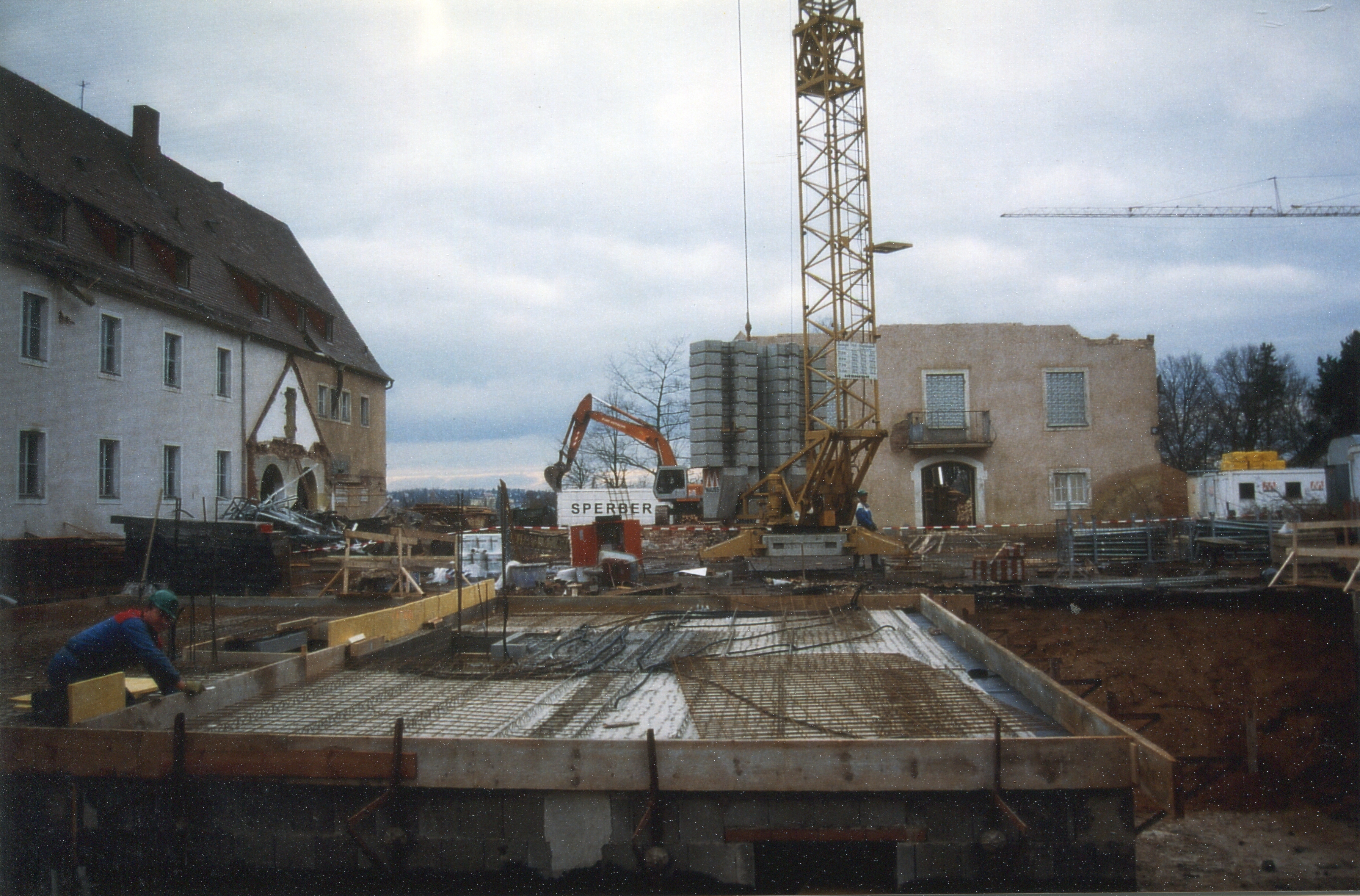 | Beschreibung | Abriss der Gemeinschaftsschule Stadeln, Verbindungsbau schon weg, Turnhalle halb abgetragen, vorne entstehen schon die neuen Gebäude, August 1999 | ||