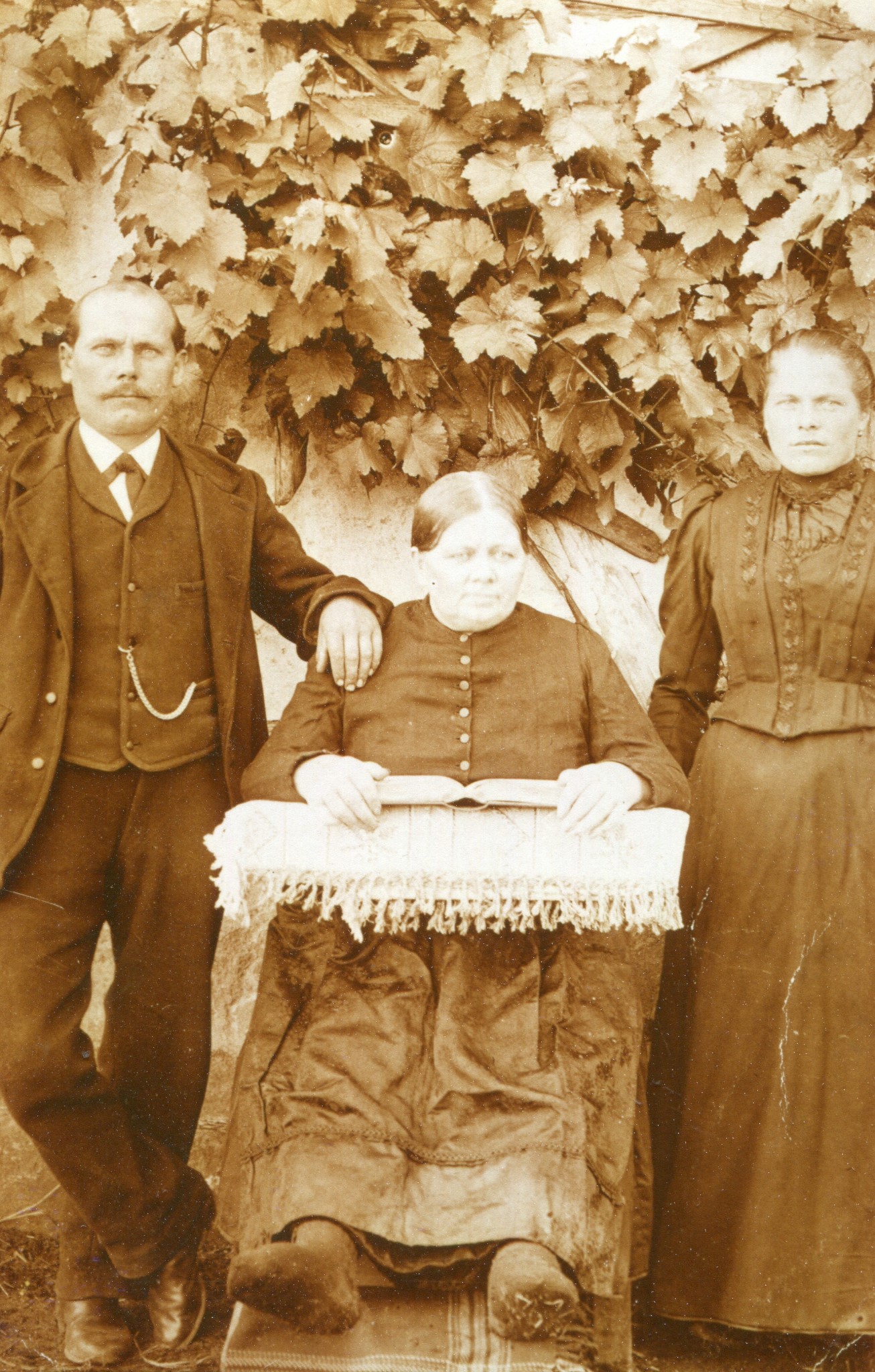 Friedrich Schneider, Besitzer des Anwesens heutige Anschrift Herboldshofer Straße 8 mit seiner ... Friedrich Schneider, Besitzer des Anwesens heutige Anschrift Herboldshofer Straße 8 mit seiner Ehefrau Maria Appollonia, geborene Dauchenbeck aus Atzenhof und seiner Mutter Barbara, eine geborene Rammler, Aufnahme von 1910<br>Urheber: unbekannt<br>Erstellungsdatum: 1910<br>Lizenz: cc-by-sa-3.0