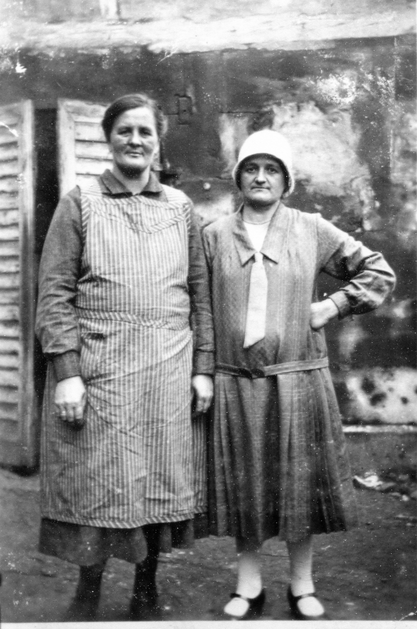 | Beschreibung | Babette Simon, geb. Fink mit Schwägerin vor ihrem Bauernhof "Veitenalthaus" in Stadeln, alte Haus Nr. 23 | ||