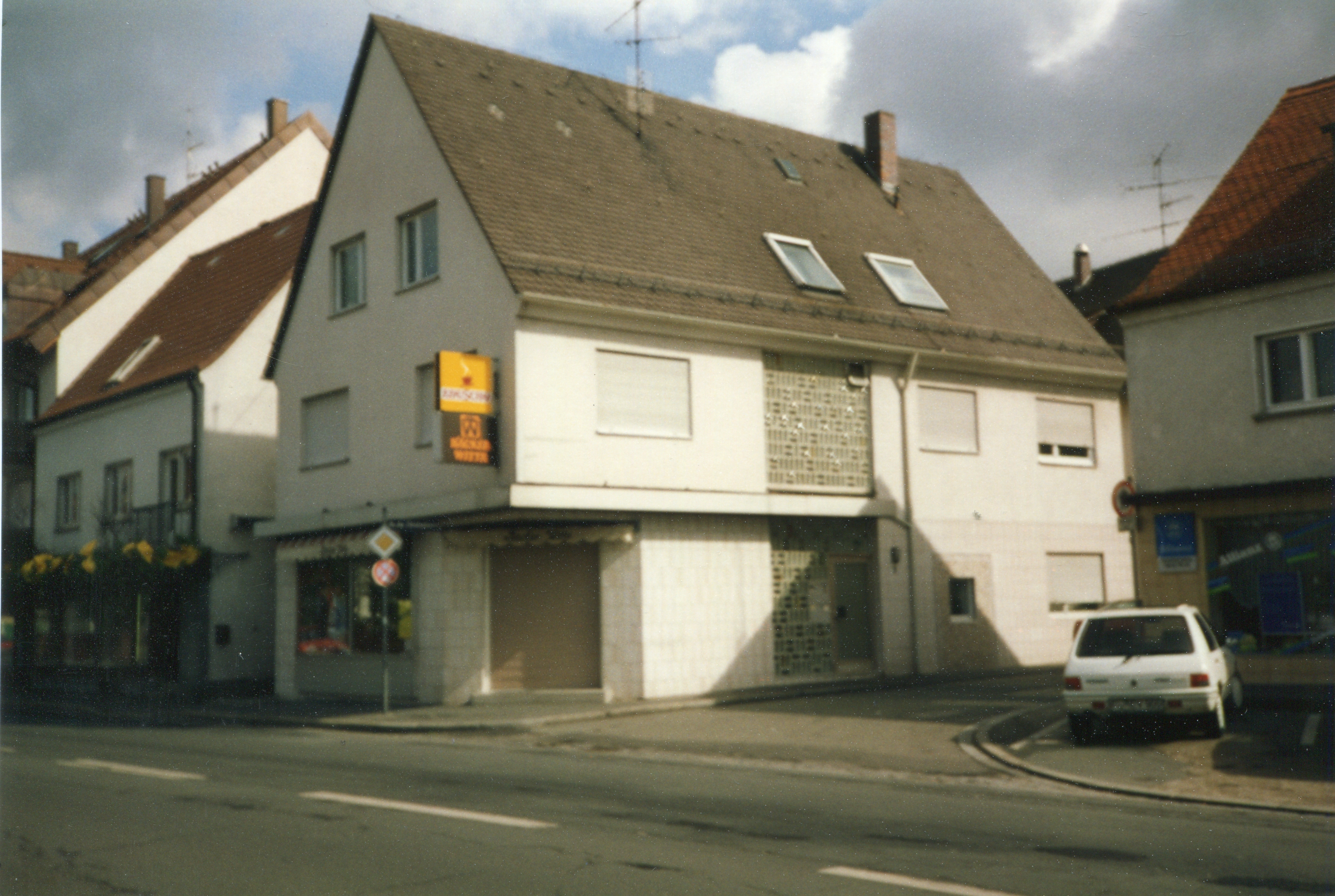 | Beschreibung | 1968-1969 erbaute neue Wohn- und Geschäftshaus Bäckerei Schmidt, nebenan stand vorher hier seit 1937 das Café Warmuth in Stadeln, Aufnahme von 1994 | ||