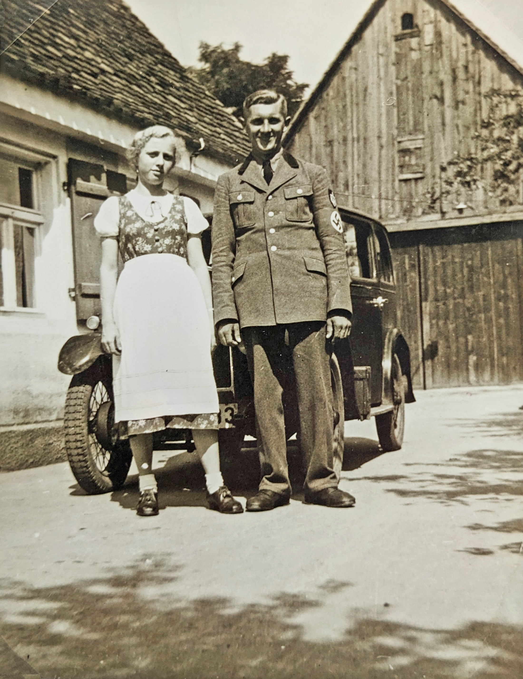 | Beschreibung | Die Kinder von Johann Bäuerlein, Marie und Hans, in Stadeln, um 1940. | ||