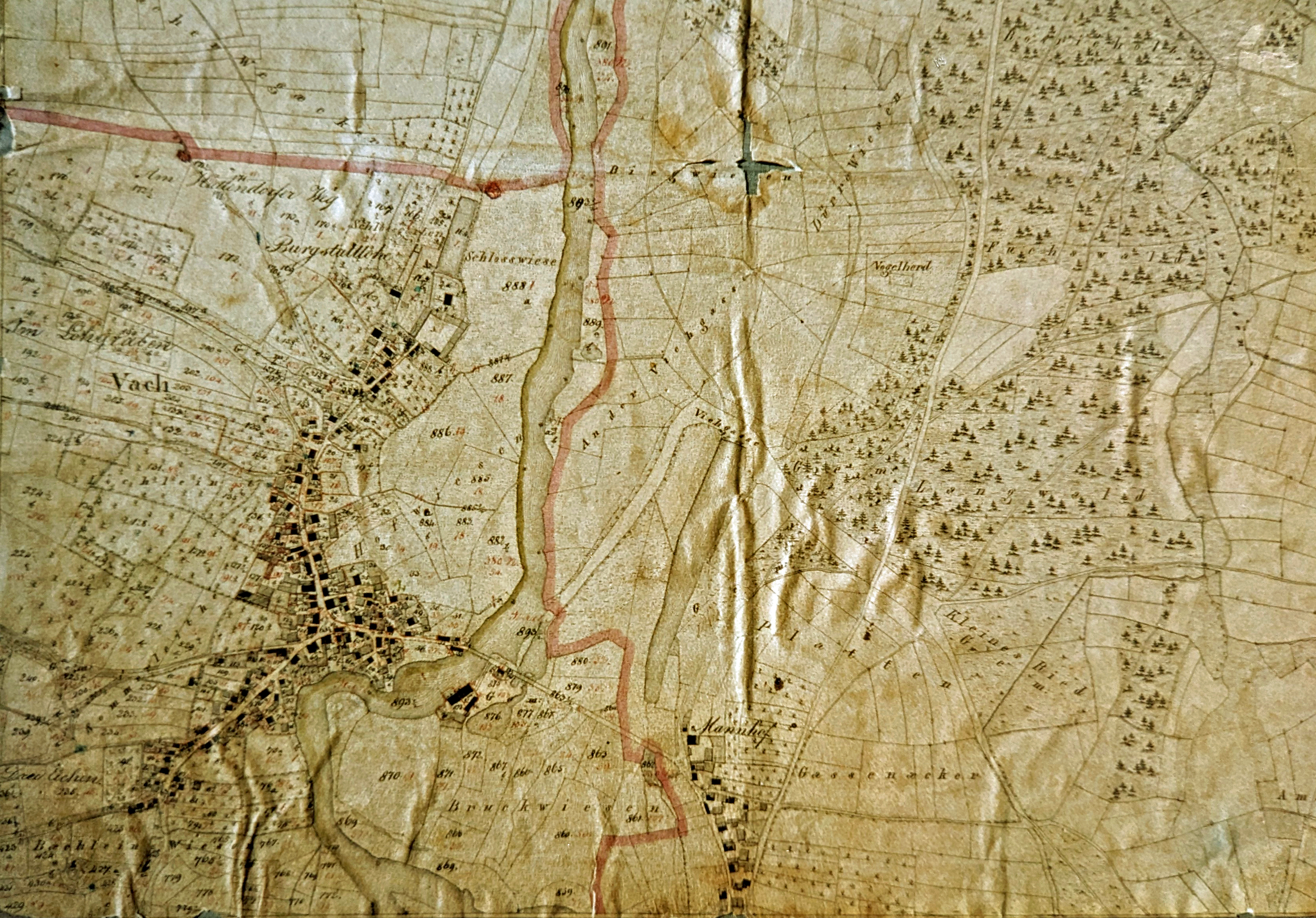 | Dateiinfo (Bild-Unterschrift und Info-Box, automatisch erstellt) | Ortskarte Vach und Mannhof aus dem Jahr 1870 Urheber: unbekannt<br>Lizenz: cc-by-sa-4.0 | ||