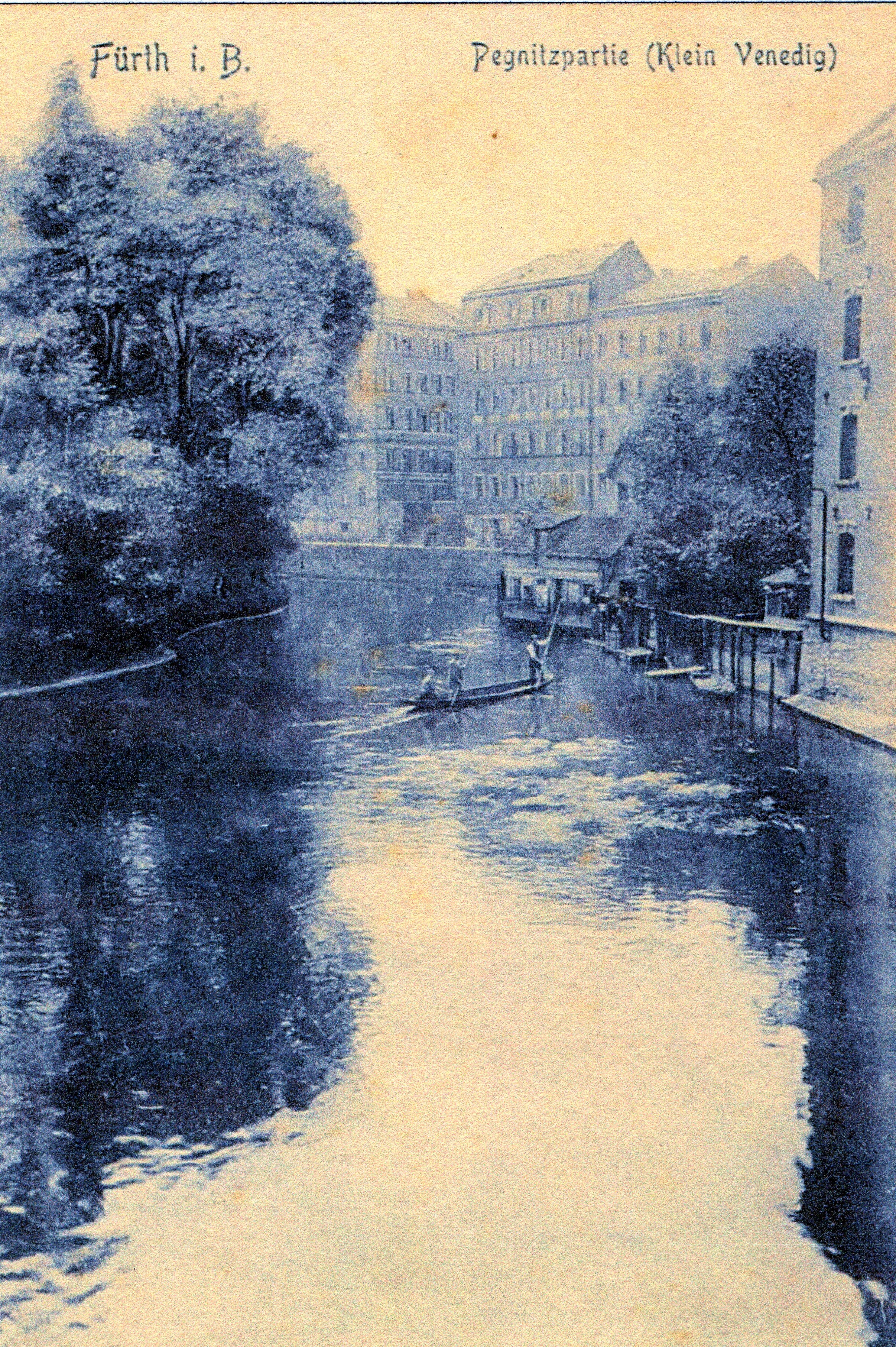 | Beschreibung | Ansichtskarte Blick von der Ludwigsbrücke "Partie an der Pegnitz (Klein-Venedig)", im Hintergrund Häuserzeile vrnl. Untere Fischerstraße 3, beide Eckhäuser mit der Treppenanlage Baldstraße 5 und Baldstraße 6, von 1907 | ||