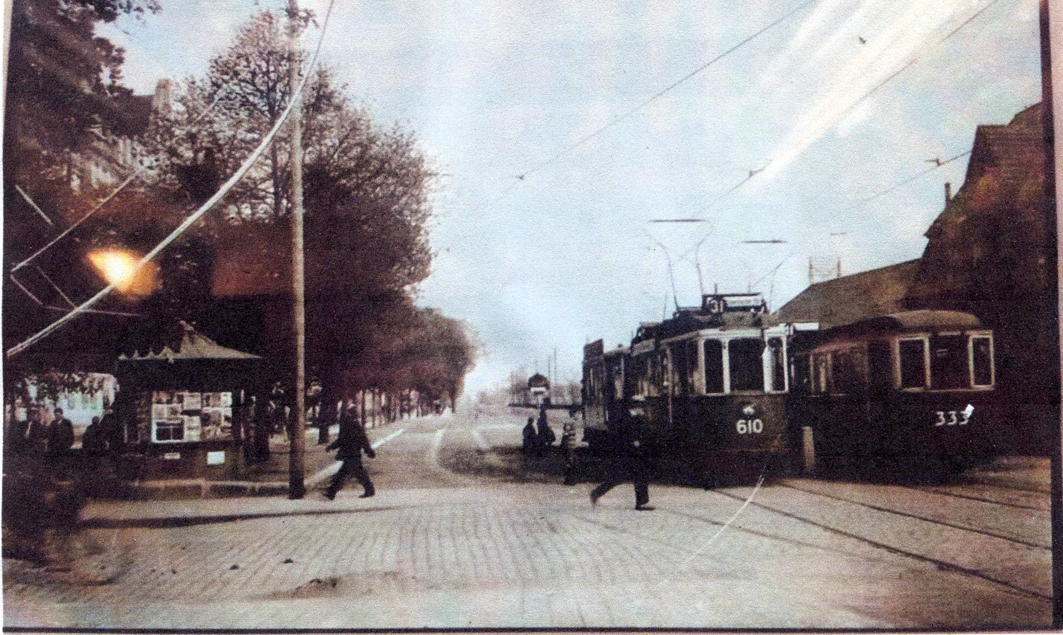 | Beschreibung | Begegnungsverkehr an der Haltestelle Jakobinenstraße mit kleinen Kiosk, den es noch einige Jahrzehnte gab, von 1931 | ||