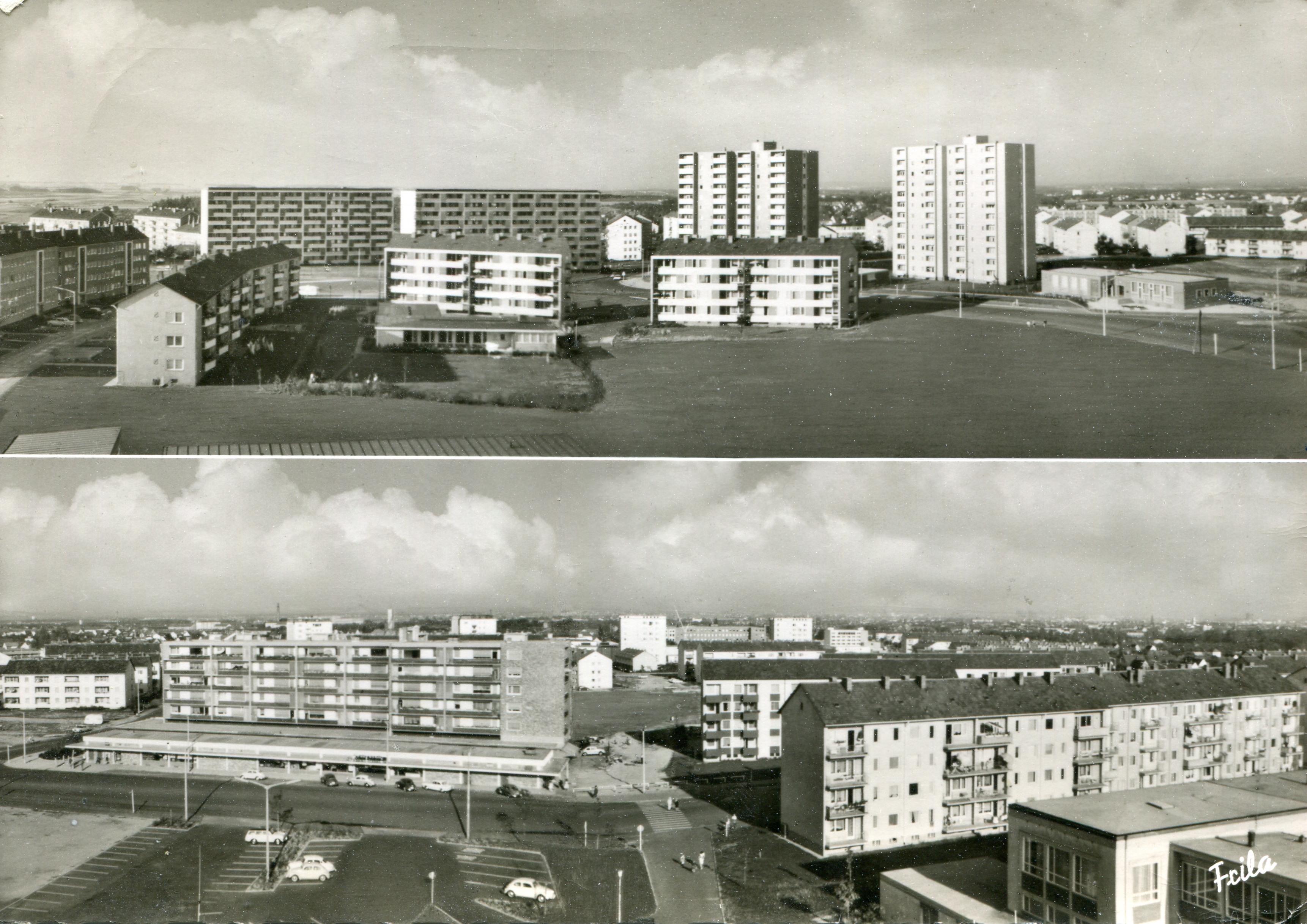 | Beschreibung | FRILA Ansichtskarte vom Turm der Heilig-Geist-Kirche auf das neue Baugebiet det Hardhöhe, Karte gelaufen 6. Juni 1966 | ||